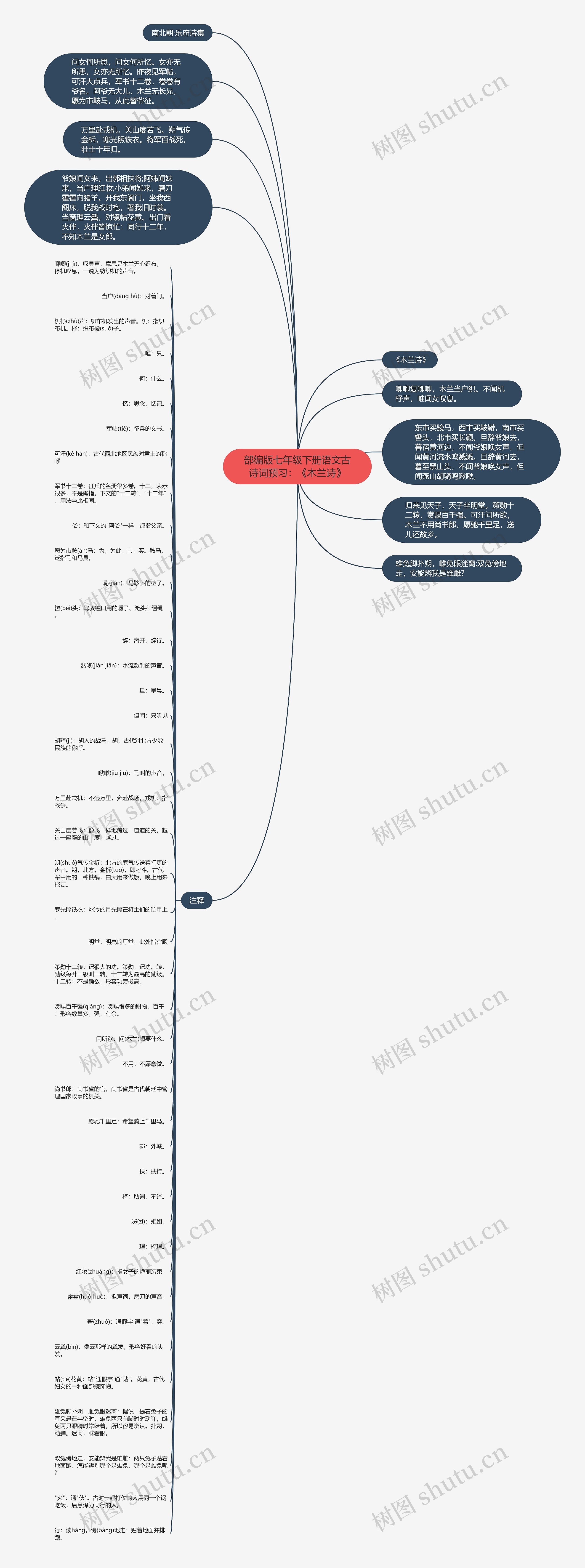 部编版七年级下册语文古诗词预习:《木兰诗》思维导图