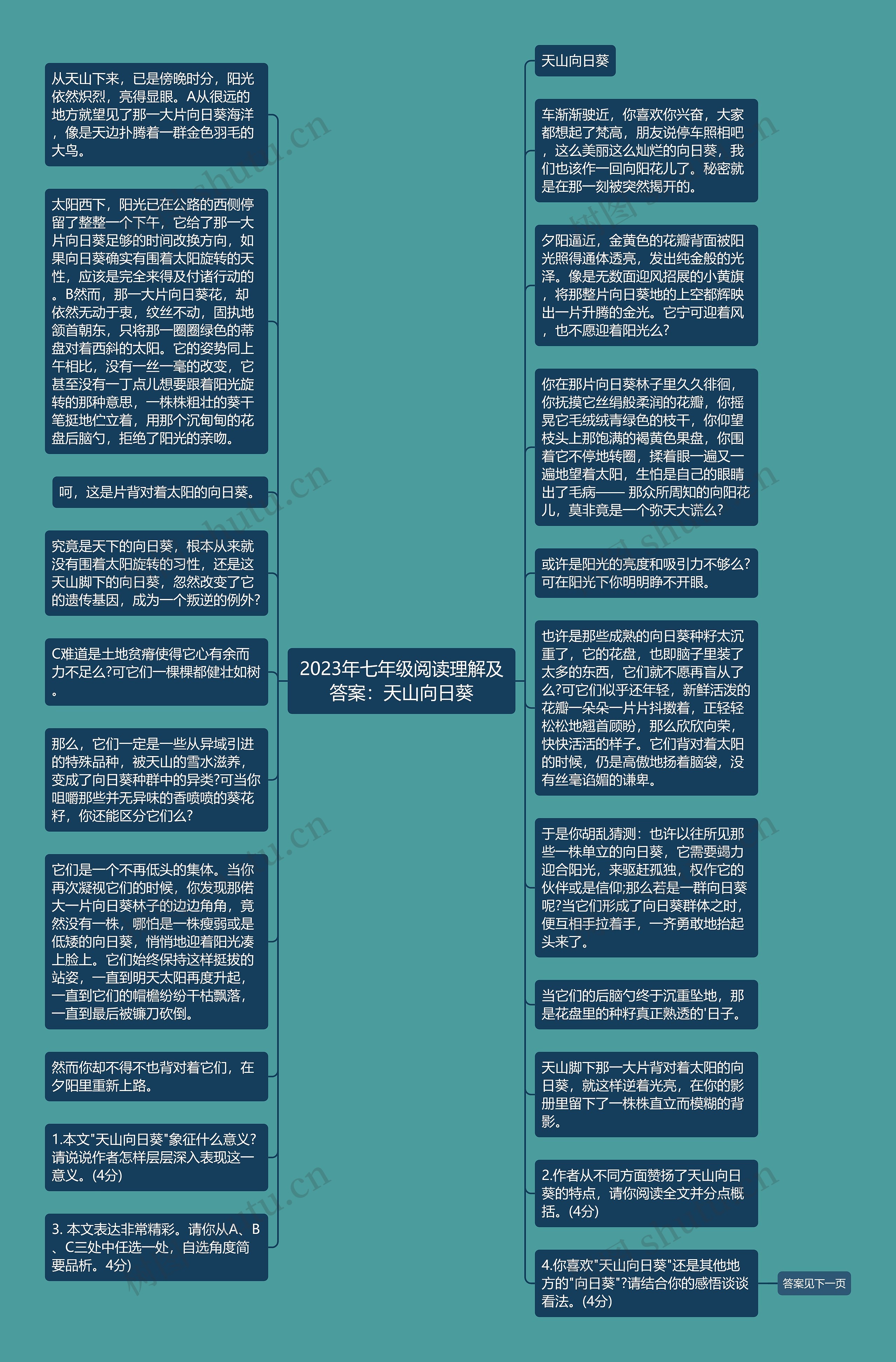 2.作者从不同方面赞扬了天山向日葵的特点,请你阅读全文并分点概括。(4分)