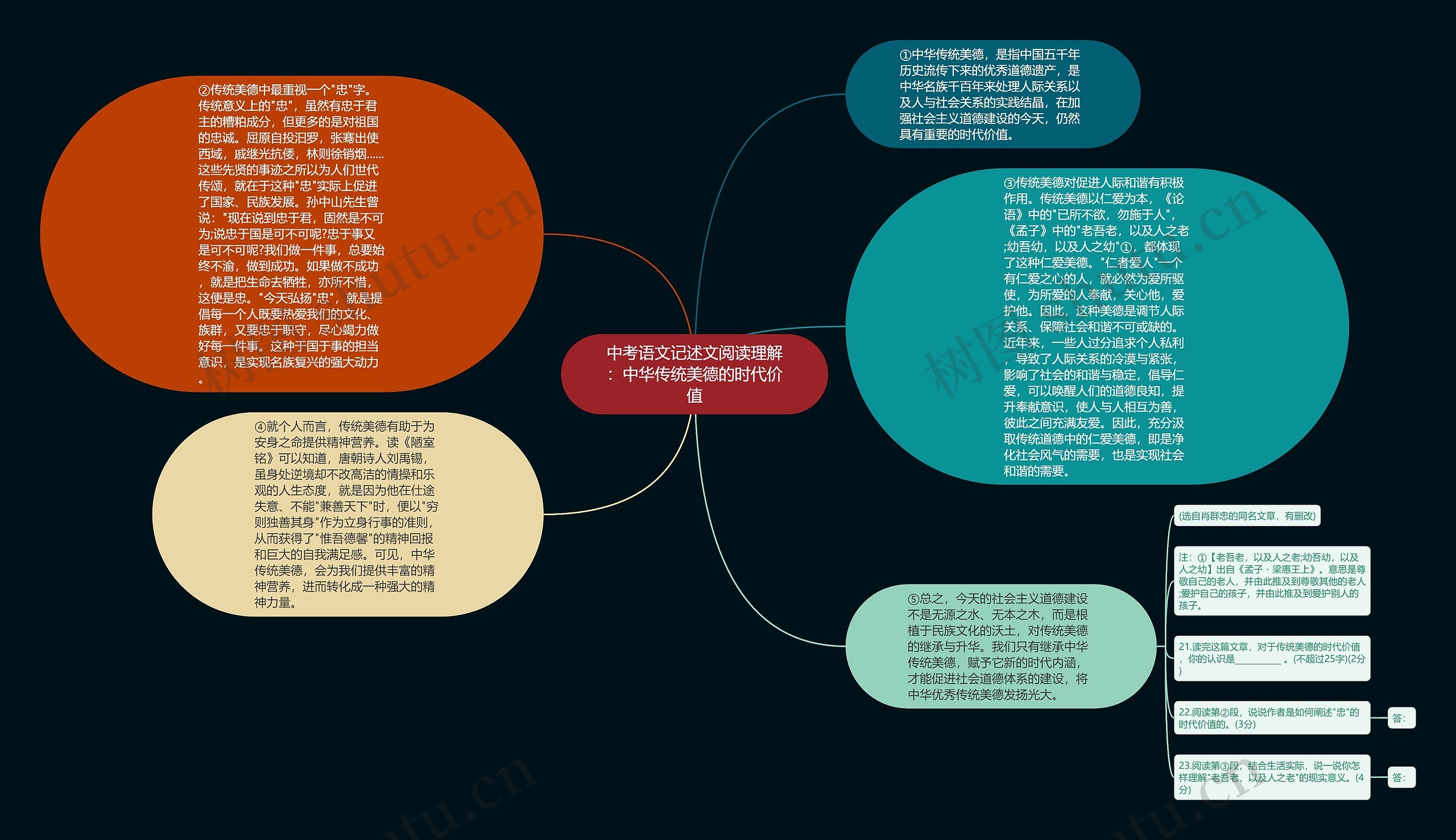 ⑤总之,今天的社会主义道德建设不是无源之水、无本之木,而是根植于民族文化的沃土,对传统美德的继承与升华。我们只有继承中华传统美德,赋予它新的时代内涵,才能促进社会道德体系的建设,将中华优秀传统美德发扬光大。