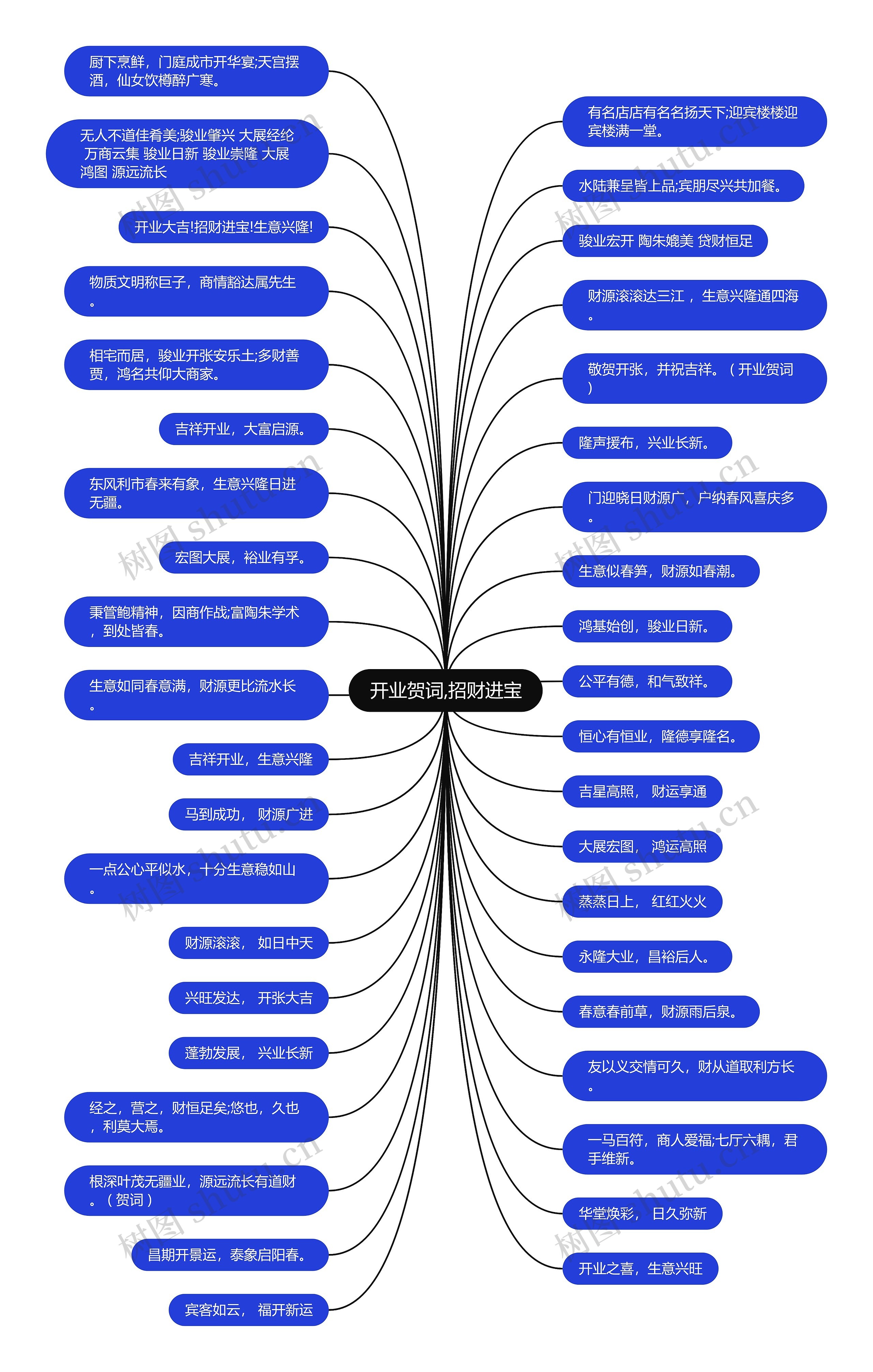 树图思维导图提供《开业贺词,招财进宝》在线思维导图免费制作,点击“编辑”按钮,可对《开业贺词,招财进宝》进行在线思维导图编辑,本思维导图属于思维导图模板主题,文件编号是:5c04a186a833ac02e4cdf1d7f0852117