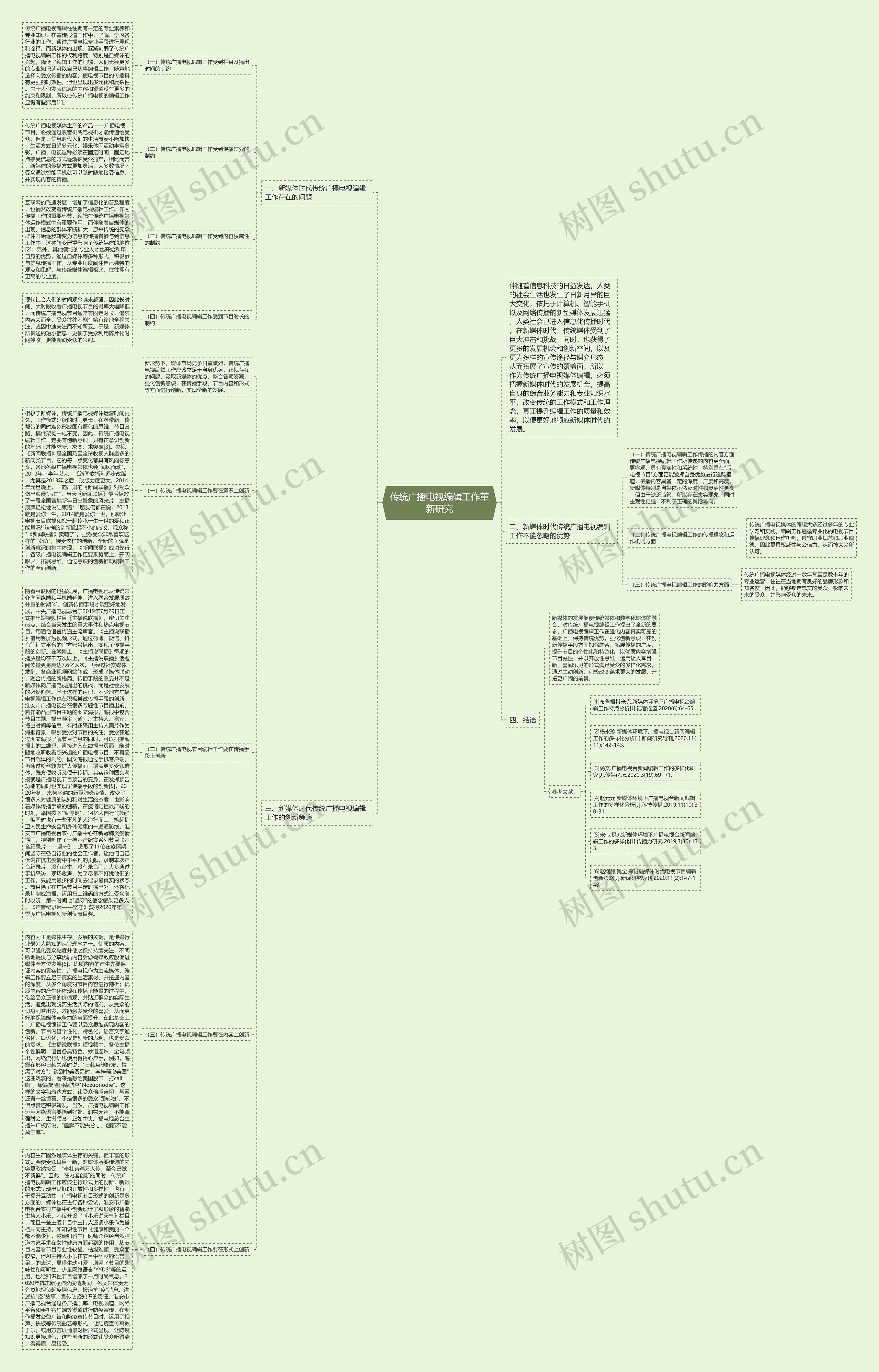 树图思维导图提供《传统广播电视编辑工作革新研究》在线思维导图免费制作,点击“编辑”按钮,可对《传统广播电视编辑工作革新研究》进行在线思维导图编辑,本思维导图属于思维导图模板主题,文件编号是:b4824e1b988361ec1f0e35c06890a04c