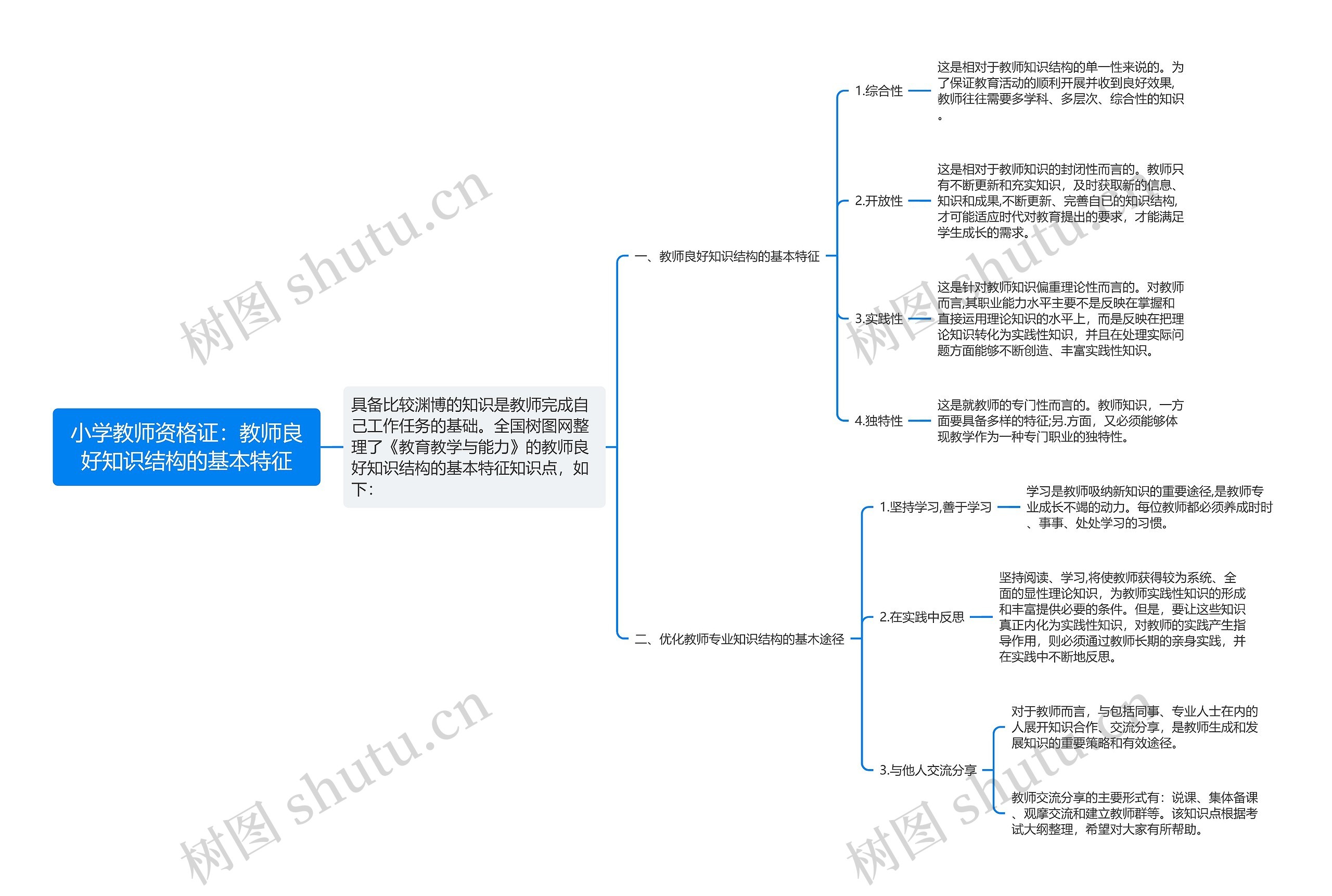 树图思维导图提供《小学教师资格证:教师良好知识结构的基本特征》在线思维导图免费制作,点击“编辑”按钮,可对《小学教师资格证:教师良好知识结构的基本特征》进行在线思维导图编辑,本思维导图属于思维导图模板主题,文件编号是:021f4e7a70c486010b01a7a81fb192dd