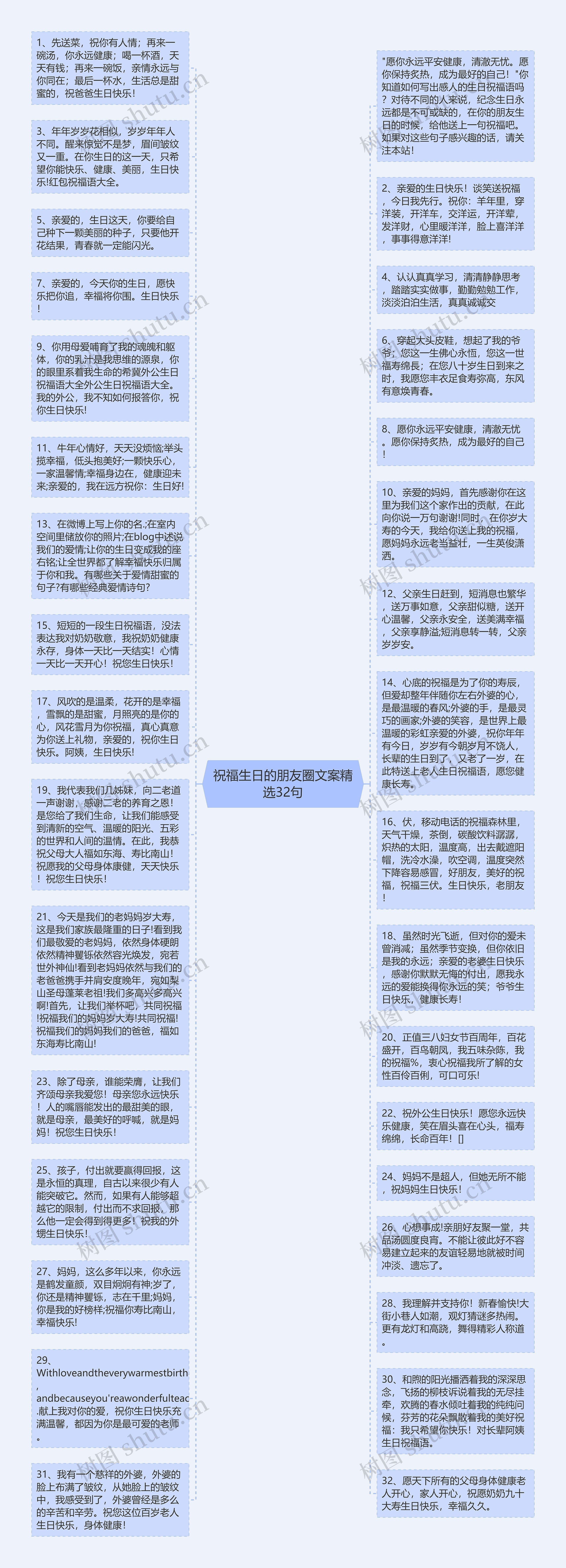 31、我有一个慈祥的外婆,外婆的脸上布满了皱纹,从她脸上的皱纹中,我感受到了,外婆曾经是多么的辛苦和辛劳。祝您这位百岁老人生日快乐,身体健康!
