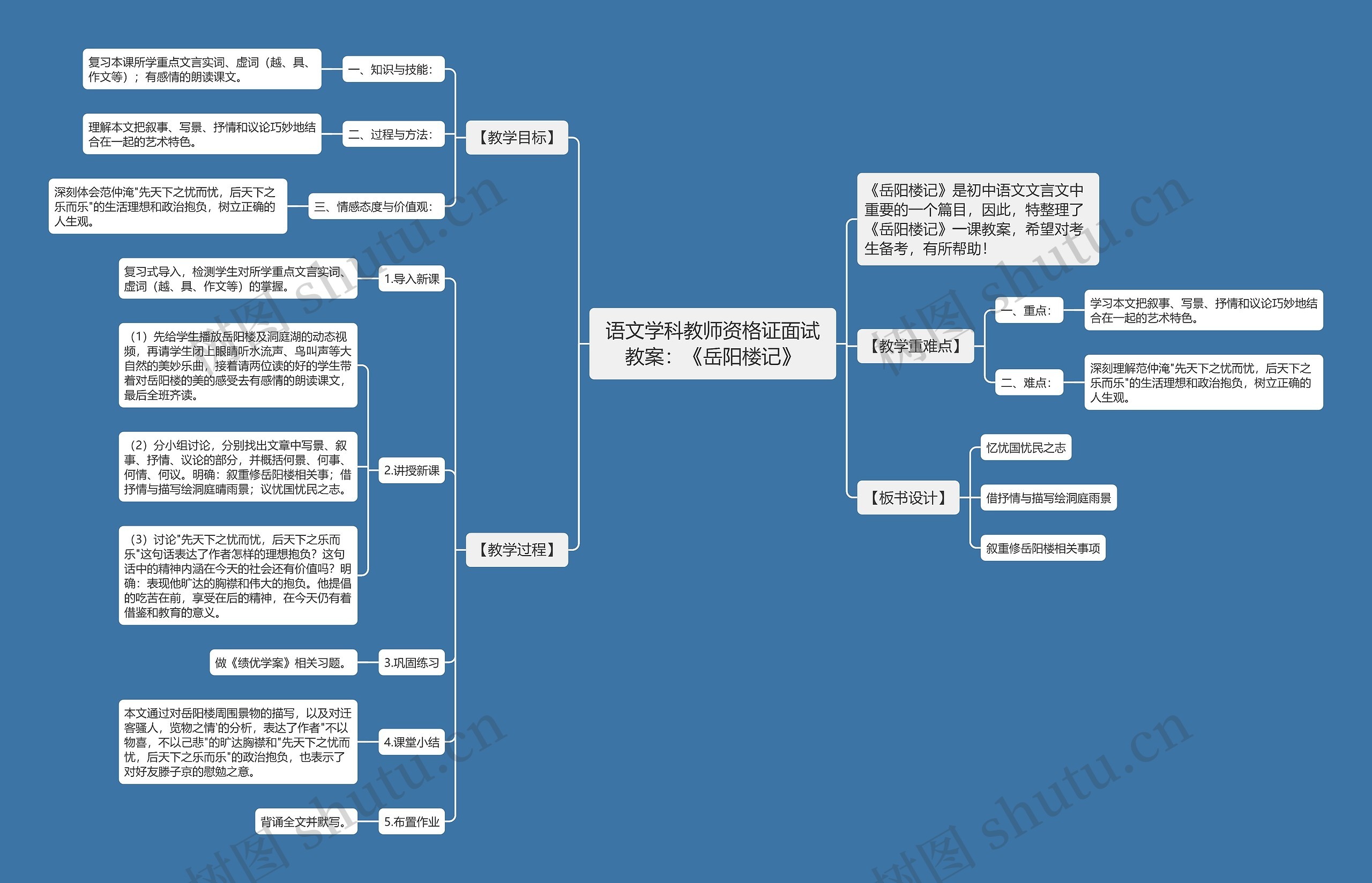 树图思维导图提供《语文学科教师资格证面试教案:《岳阳楼记》》在线思维导图免费制作,点击“编辑”按钮,可对《语文学科教师资格证面试教案:《岳阳楼记》》进行在线思维导图编辑,本思维导图属于思维导图模板主题,文件编号是:e2238f4761dc63ebe63b591ac6756741