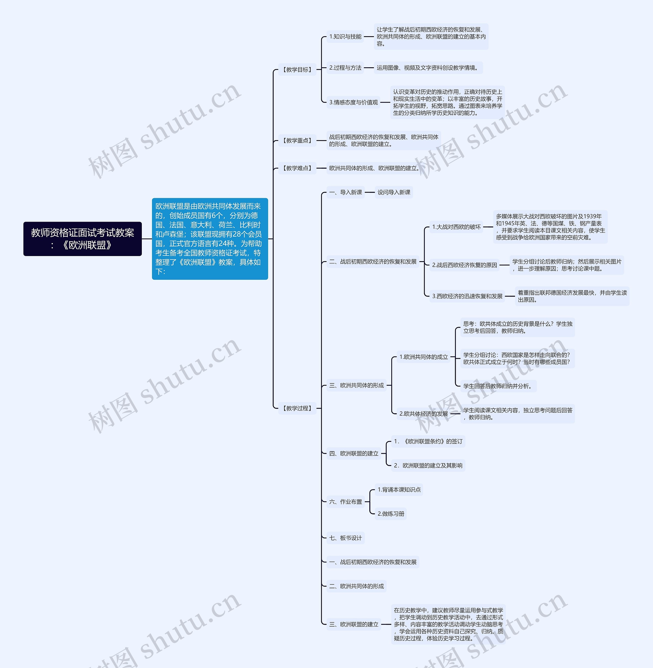 树图思维导图提供《教师资格证面试考试教案:《欧洲联盟》》在线思维导图免费制作,点击“编辑”按钮,可对《教师资格证面试考试教案:《欧洲联盟》》进行在线思维导图编辑,本思维导图属于思维导图模板主题,文件编号是:d179e95b410cf20b4ef4757a2ac9c128