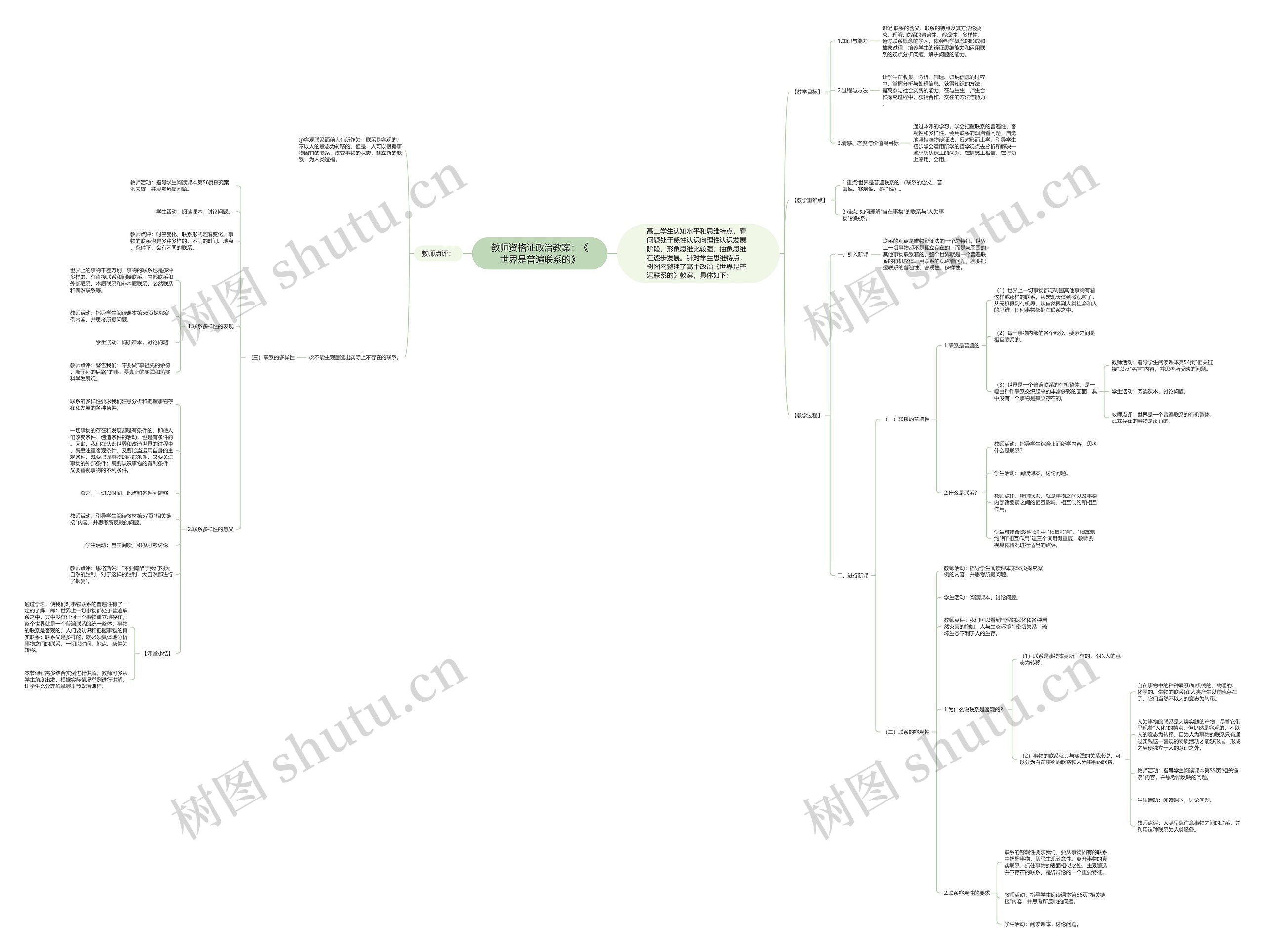 树图思维导图提供《教师资格证政治教案:《世界是普遍联系的》》在线思维导图免费制作,点击“编辑”按钮,可对《教师资格证政治教案:《世界是普遍联系的》》进行在线思维导图编辑,本思维导图属于思维导图模板主题,文件编号是:f12be56f0d28d8308b95430a4b85d13d