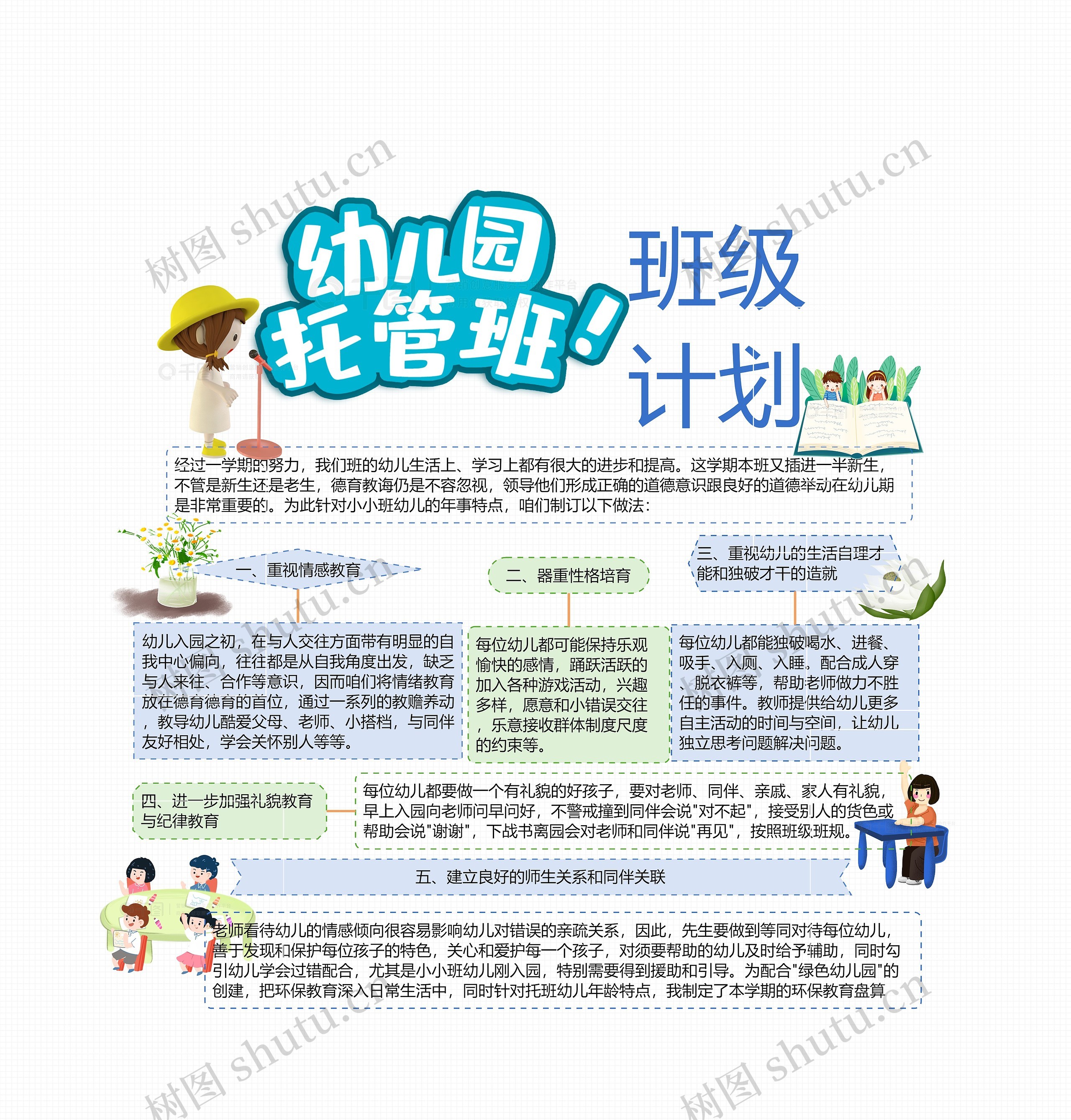 经过一学期的努力,我们班的幼儿生活上、学习上都有很大的进步和提高。这学期本班又插进一半新生,不管是新生还是老生,德育教诲仍是不容忽视,领导他们形成正确的道德意识跟良好的道德举动在幼儿期是非常重要的。为此针对小小班幼儿的年事特点,咱们制订以下做法:思维导图模板大纲