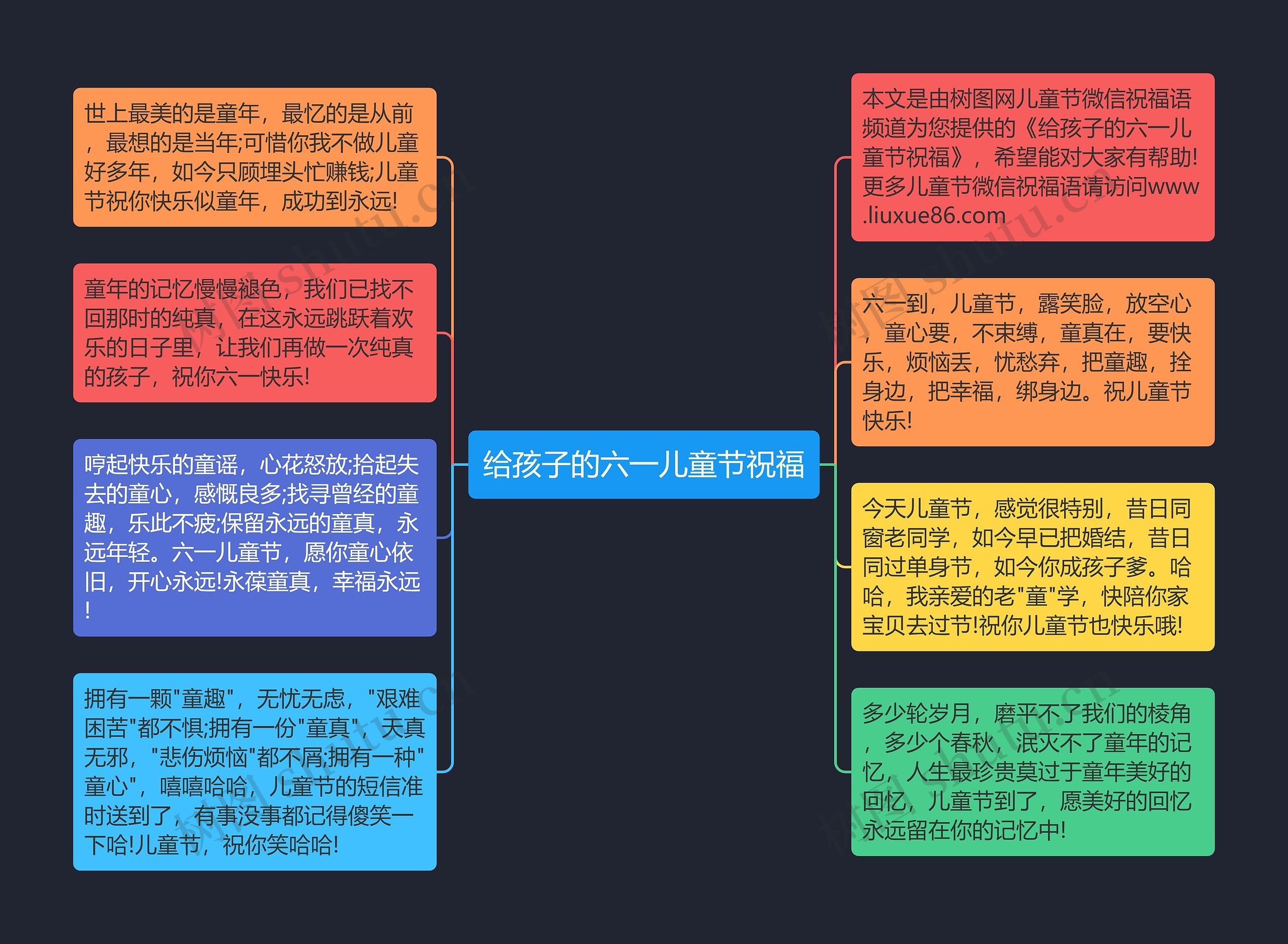 本文是由树图网儿童节微信祝福语频道为您提供的《给孩子的六一儿童节祝福》,希望能对大家有帮助!更多儿童节微信祝福语请访问www.liuxue86.com