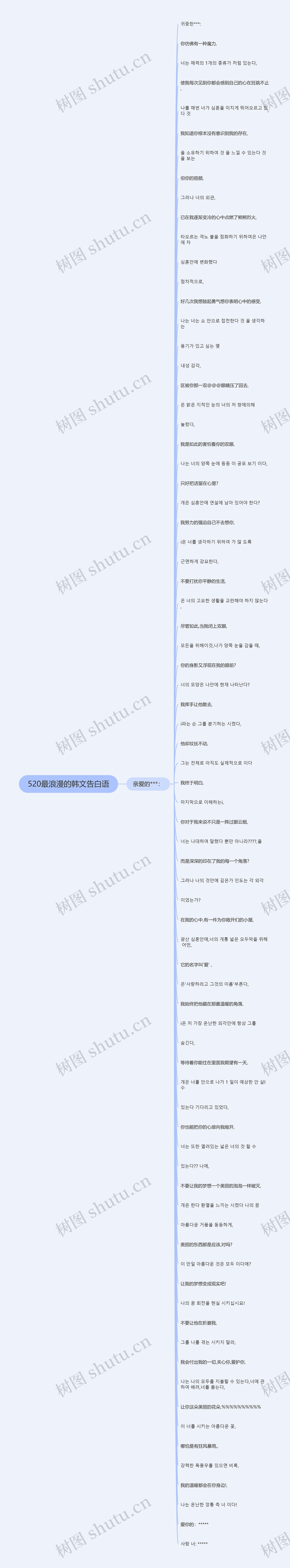树图思维导图提供《520最浪漫的韩文告白语》在线思维导图免费制作,点击“编辑”按钮,可对《520最浪漫的韩文告白语》进行在线思维导图编辑,本思维导图属于思维导图模板主题,文件编号是:6631fa3246e74b0f3d05dba7bf4872ed