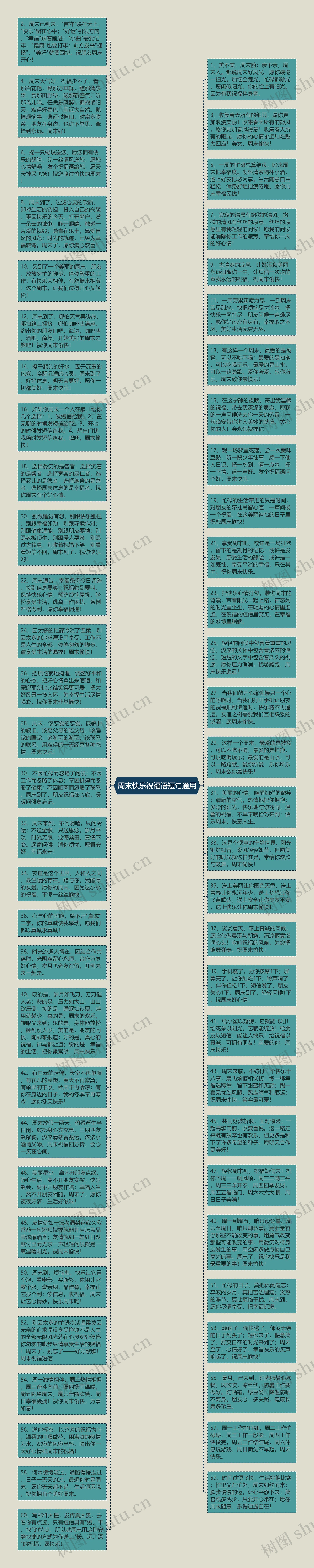 50、周末到,烦恼抛,快乐让它冒个泡;看电影,买新衫,休闲让它露个脸;邀亲朋,品佳肴,幸福让它报个到;读信息,收祝福,周末让它心情妙。快乐周末哟!