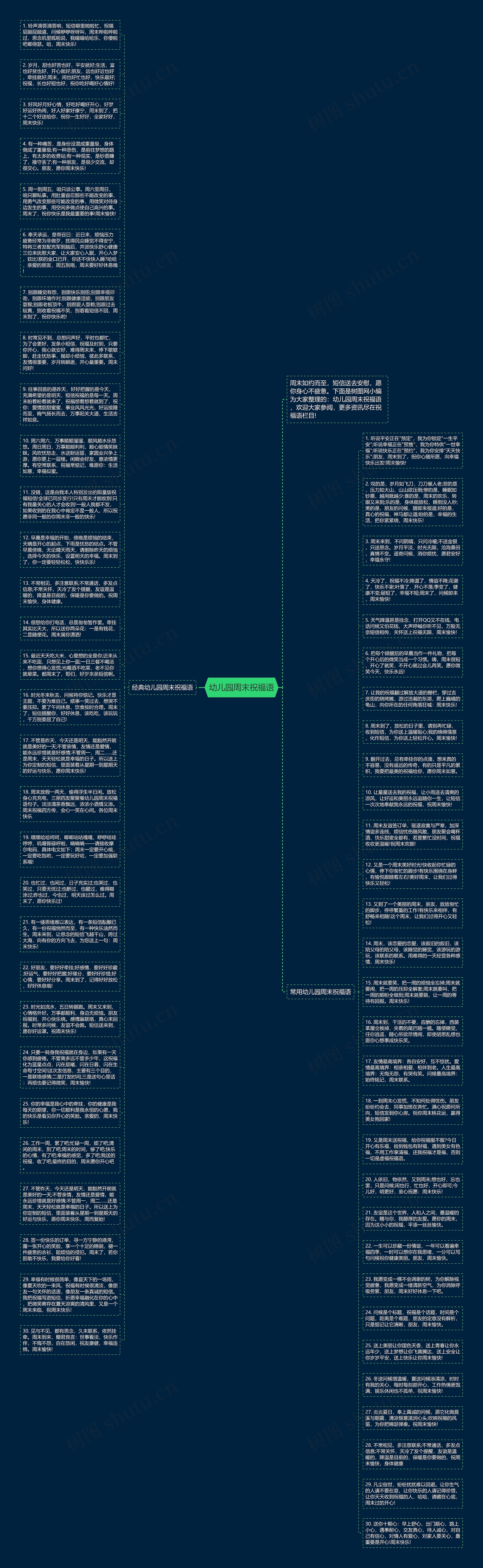18. 周末放假一两天,偷得浮生半日闲。放松身心充充电,三朋四友聚聚餐幼儿园周末祝福语句子。淡淡清茶香飘远,浓浓小酒情义添。周末祝福四方传,会心一笑在心间。各位周末快乐
