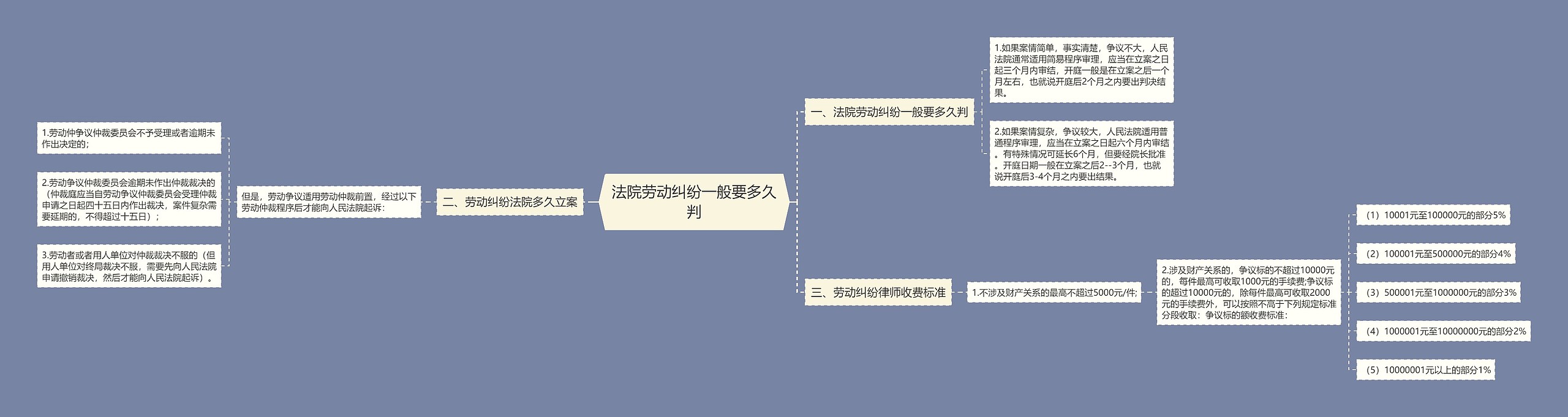 树图思维导图提供《法院劳动纠纷一般要多久判》在线思维导图免费制作,点击“编辑”按钮,可对《法院劳动纠纷一般要多久判》进行在线思维导图编辑,本思维导图属于思维导图模板主题,文件编号是:769f031ede587759ede72ec31017f1be