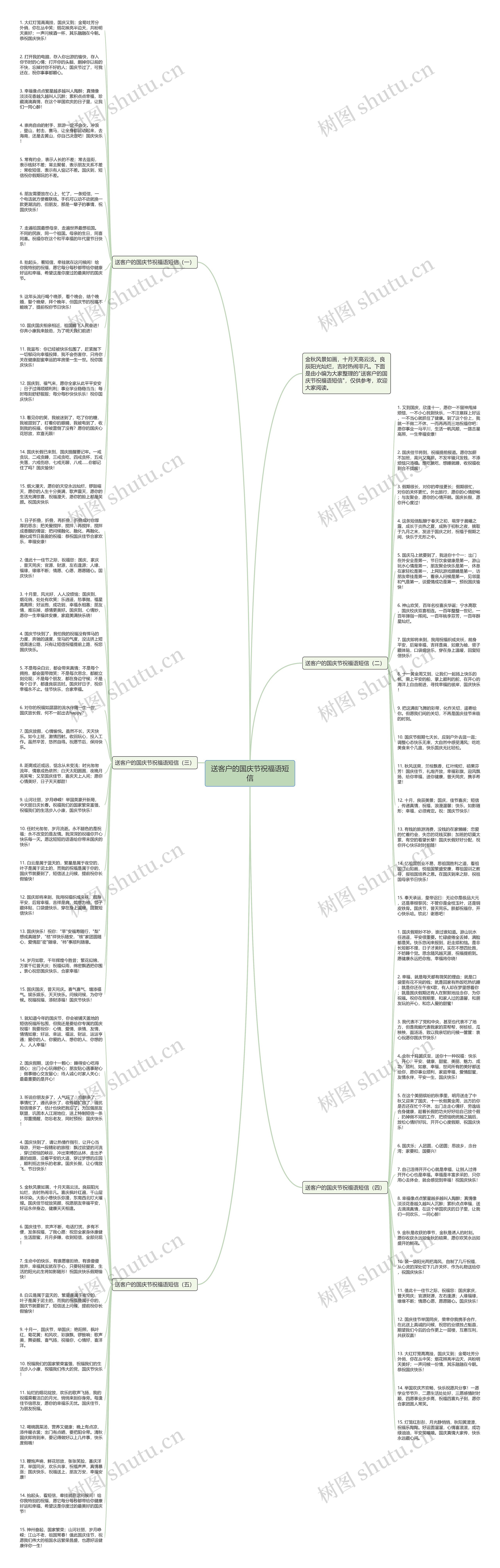 15. 灯笼红彤彤,月光静悄悄,秋阳黄澄澄,祝福乐陶陶。好运圆溜溜,心情喜滋滋,成功绿油油,平安笑嘻嘻。国庆真情大家传,快乐永远藏心间。