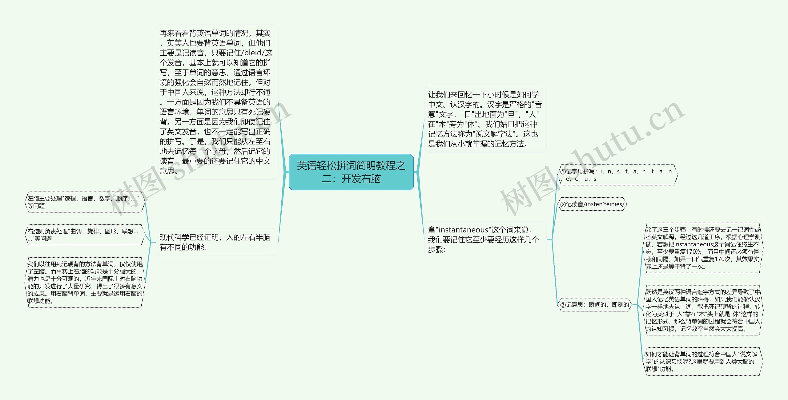 树图思维导图提供《英语轻松拼词简明教程之二:开发右脑》在线思维导图免费制作,点击“编辑”按钮,可对《英语轻松拼词简明教程之二:开发右脑》进行在线思维导图编辑,本思维导图属于思维导图模板主题,文件编号是:b804e92af648e5252f9a41b84075d252