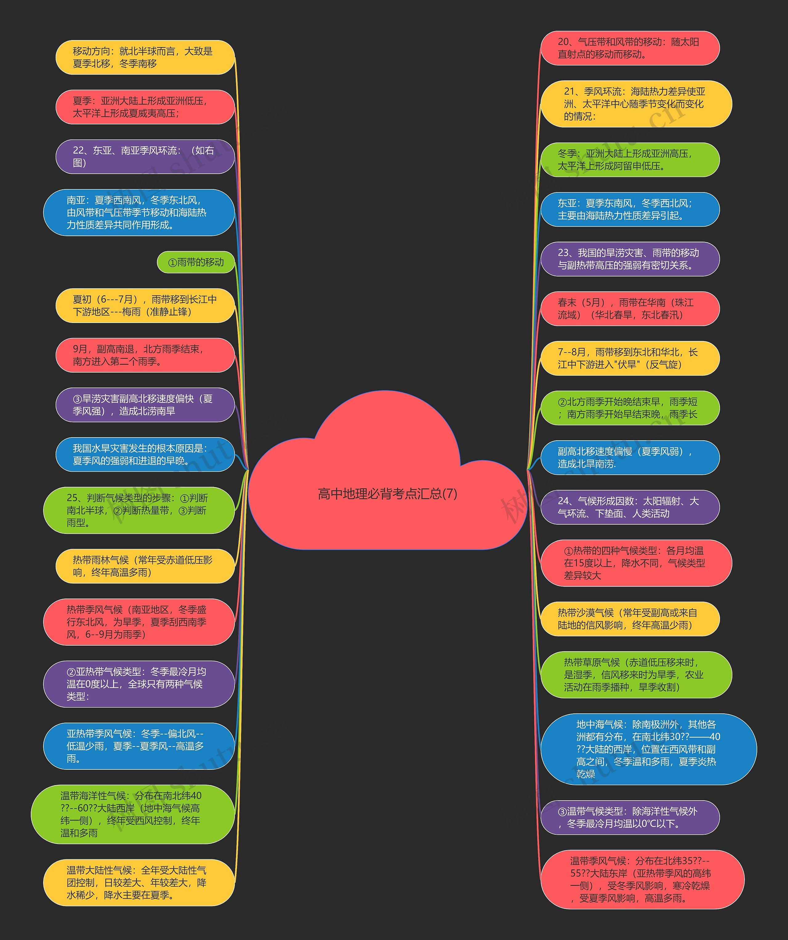 21、季风环流:海陆热力差异使亚洲、太平洋中心随季节变化而变化的情况: