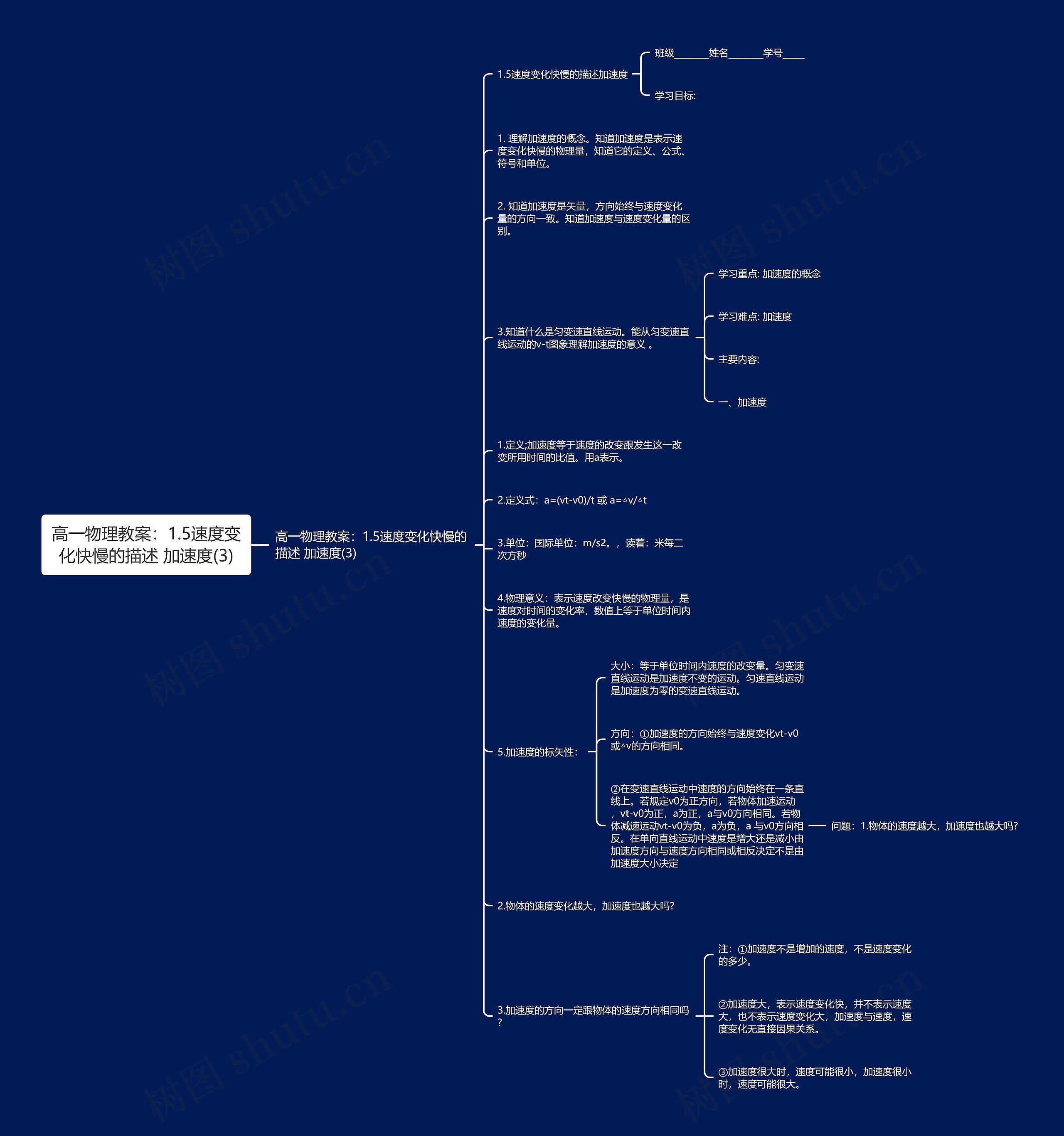 4.物理意义:表示速度改变快慢的物理量,是速度对时间的变化率,数值上等于单位时间内速度的变化量。