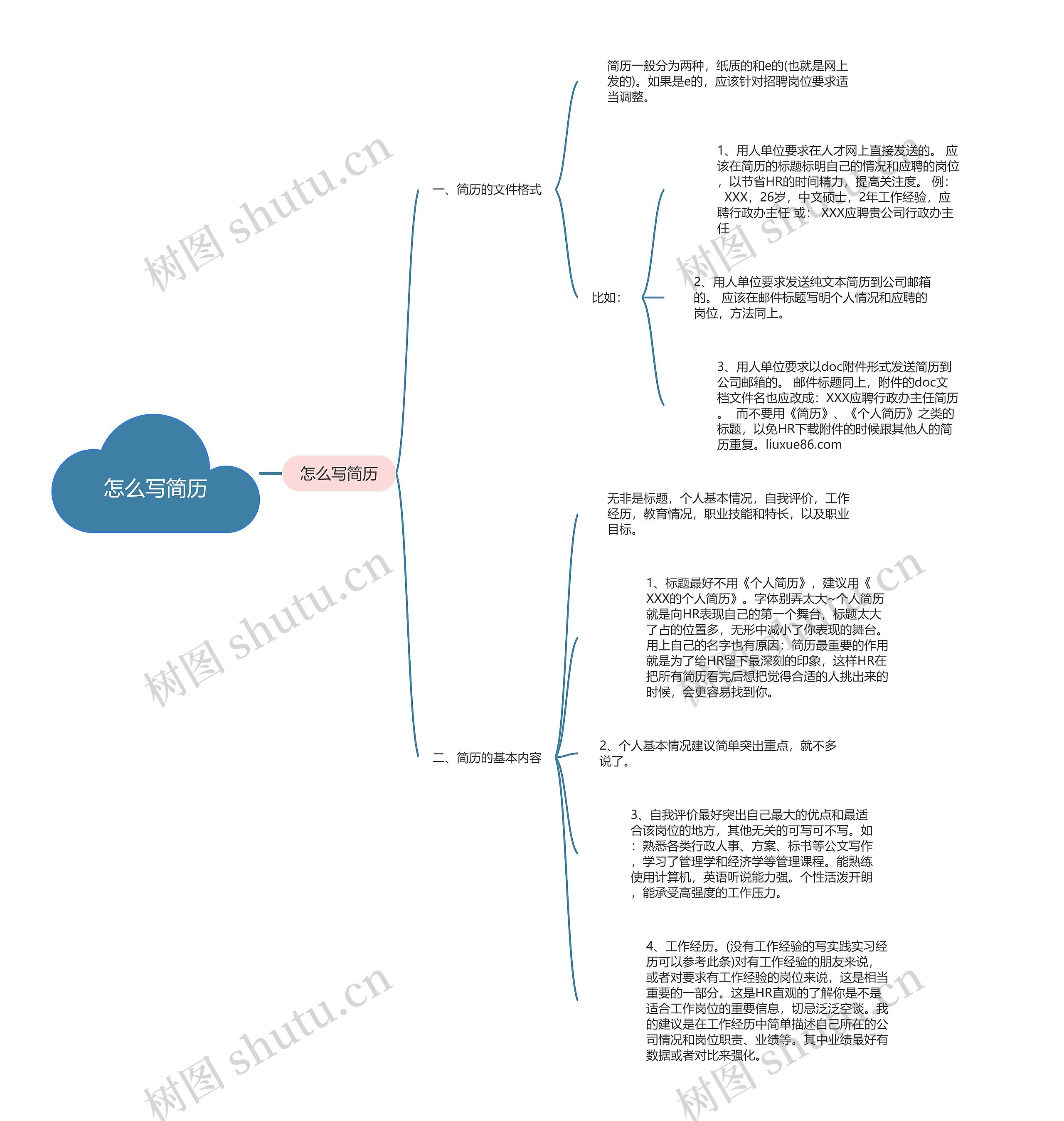 树图思维导图提供《怎么写简历》在线思维导图免费制作,点击“编辑”按钮,可对《怎么写简历》进行在线思维导图编辑,本思维导图属于思维导图模板主题,文件编号是:89224d0c8f6990ad5c4fa93f601f806c
