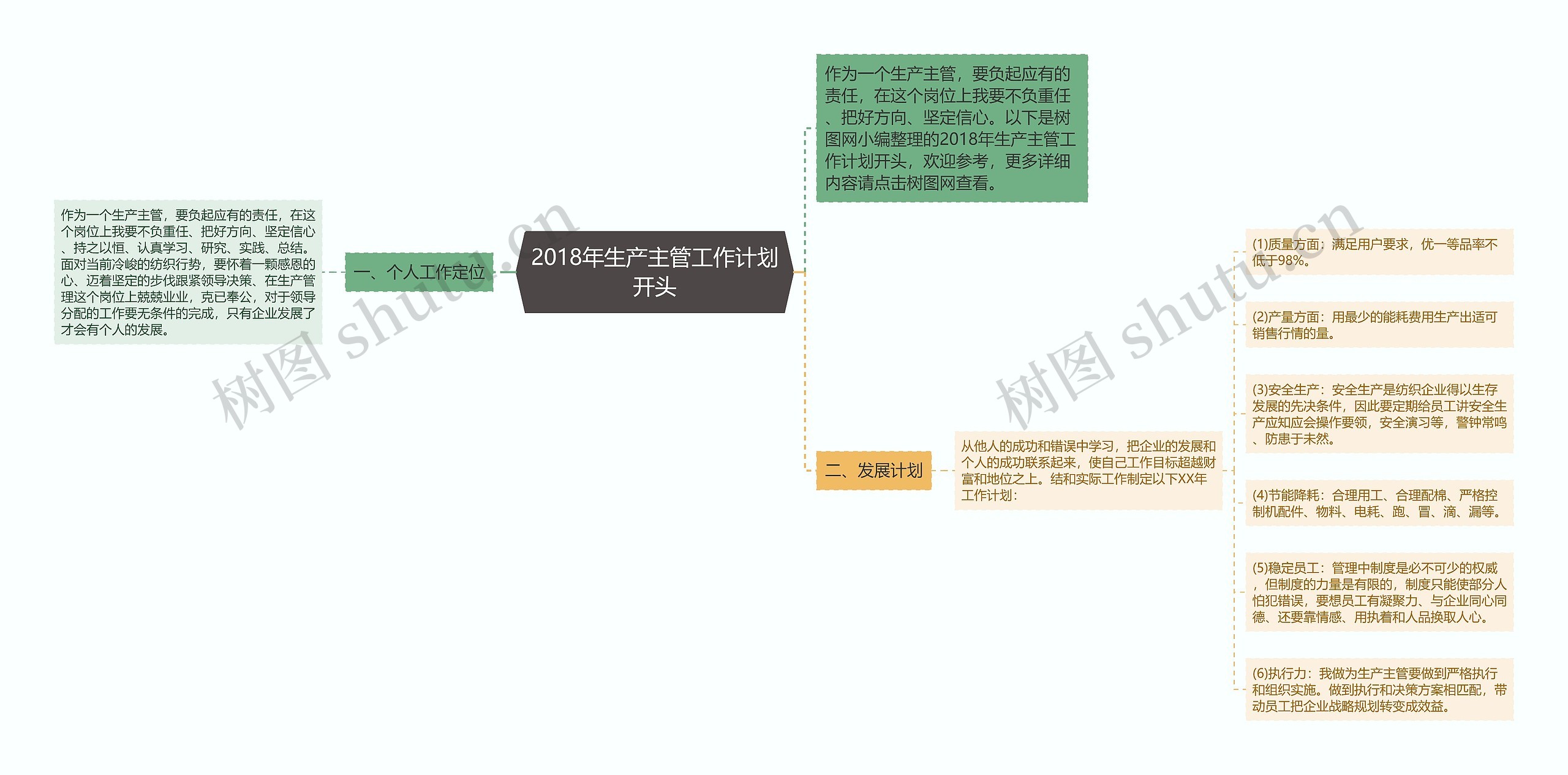 树图思维导图提供《2018年生产主管工作计划开头》在线思维导图免费制作,点击“编辑”按钮,可对《2018年生产主管工作计划开头》进行在线思维导图编辑,本思维导图属于思维导图模板主题,文件编号是:90a9cc057392e72b79897600ec38e7d4