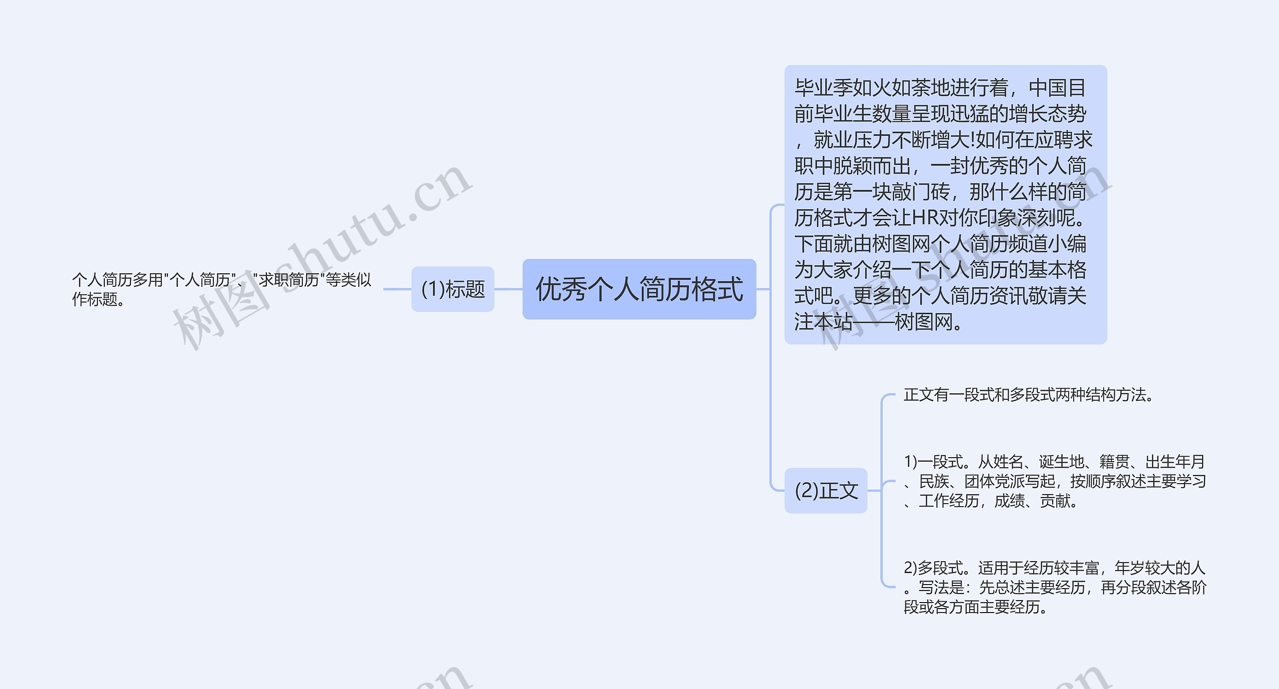 树图思维导图提供《优秀个人简历格式》在线思维导图免费制作,点击“编辑”按钮,可对《优秀个人简历格式》进行在线思维导图编辑,本思维导图属于思维导图模板主题,文件编号是:0ae22dfdd938b4318e8cf243b238138d
