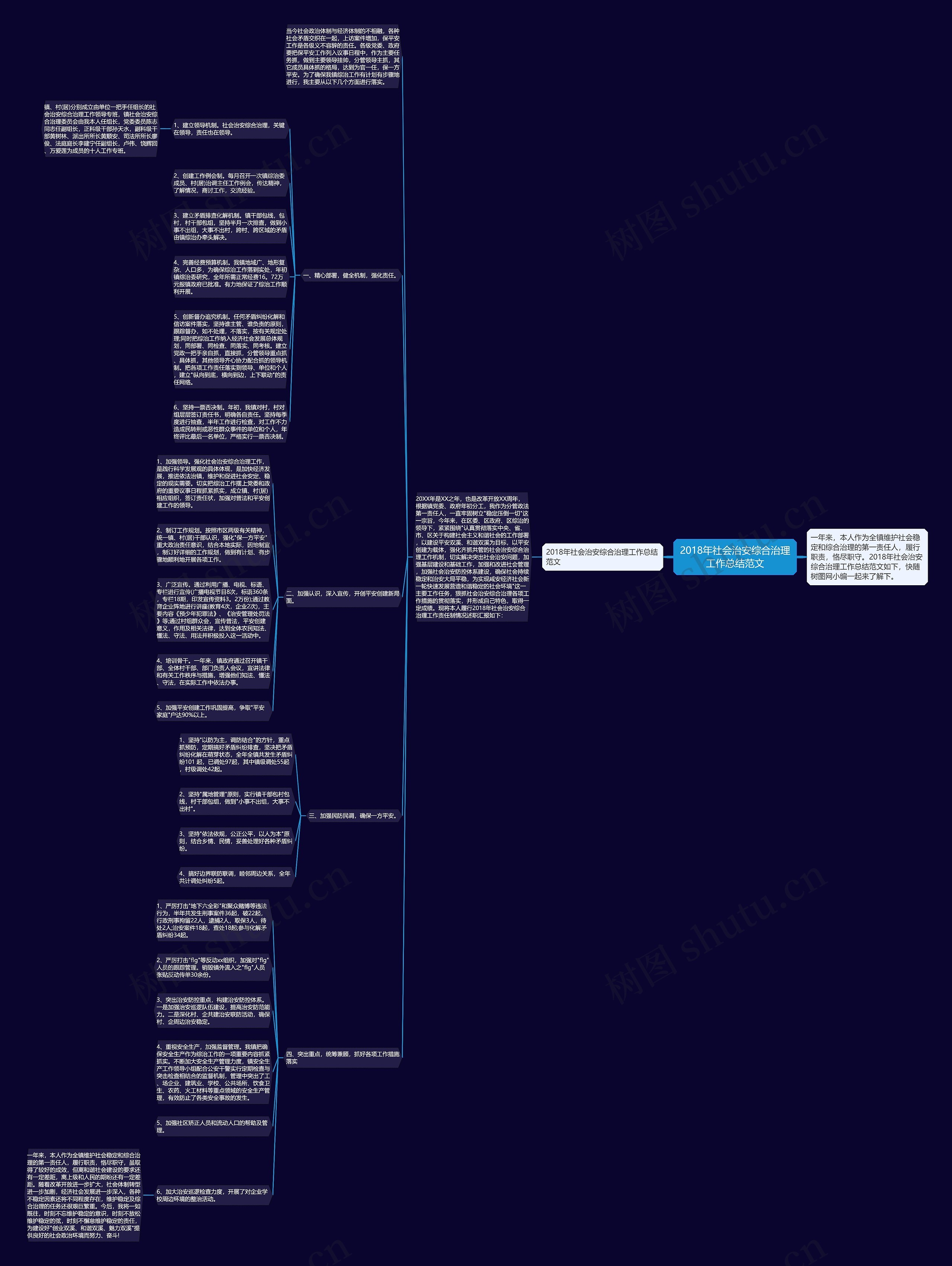 镇、村(居)分别成立由单位一把手任组长的社会治安综合治理工作领导专班,镇社会治安综合治理委员会由我本人任组长,党委委员陈志同志任副组长,正科级干部孙天水,副科级干部黄树林、派出所所长黄顺安、司法所所长廖俊、法庭庭长李建宁任副组长,卢伟、饶辉回、万爱莲为成员的十人工作专班。
