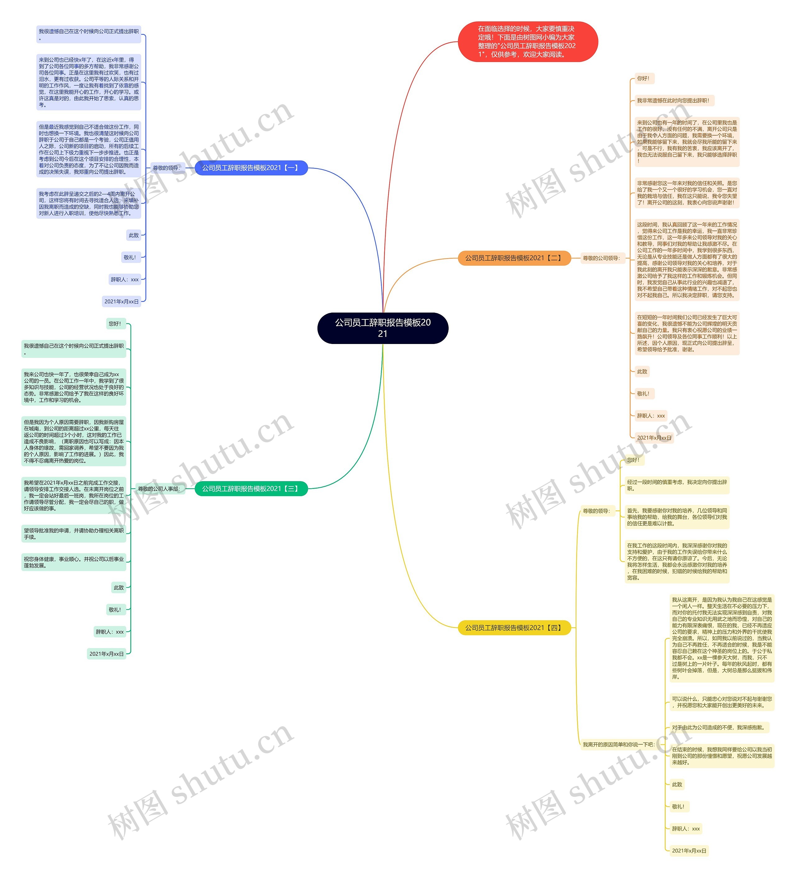 树图思维导图提供《公司员工辞职报告模板2021》在线思维导图免费制作,点击“编辑”按钮,可对《公司员工辞职报告模板2021》进行在线思维导图编辑,本思维导图属于思维导图模板主题,文件编号是:29301415623f2b3e825d90e6b9cf6715