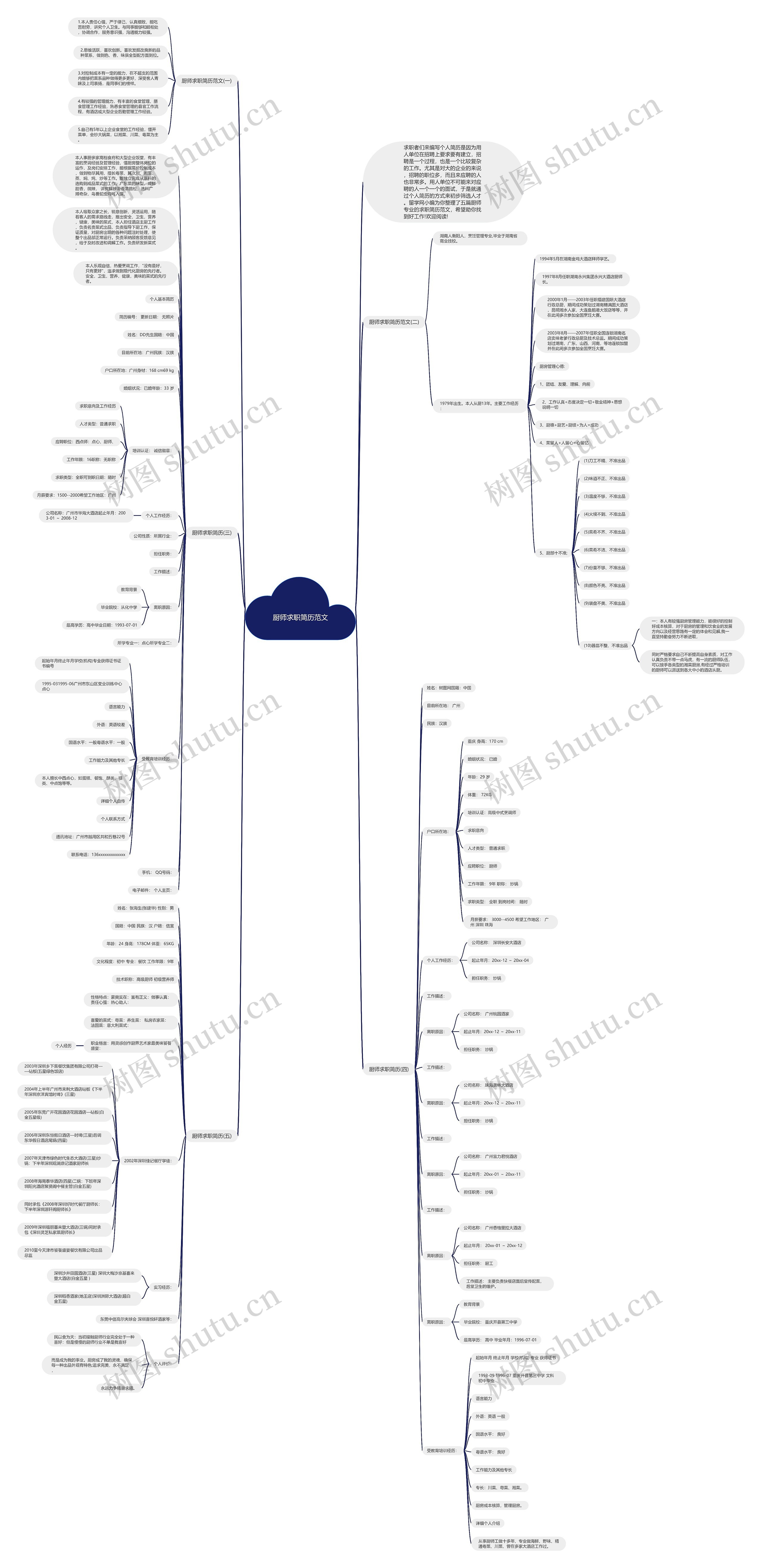 树图思维导图提供《厨师求职简历范文》在线思维导图免费制作,点击“编辑”按钮,可对《厨师求职简历范文》进行在线思维导图编辑,本思维导图属于思维导图模板主题,文件编号是:5ed6988f797d3bb7f11946764024ab4f