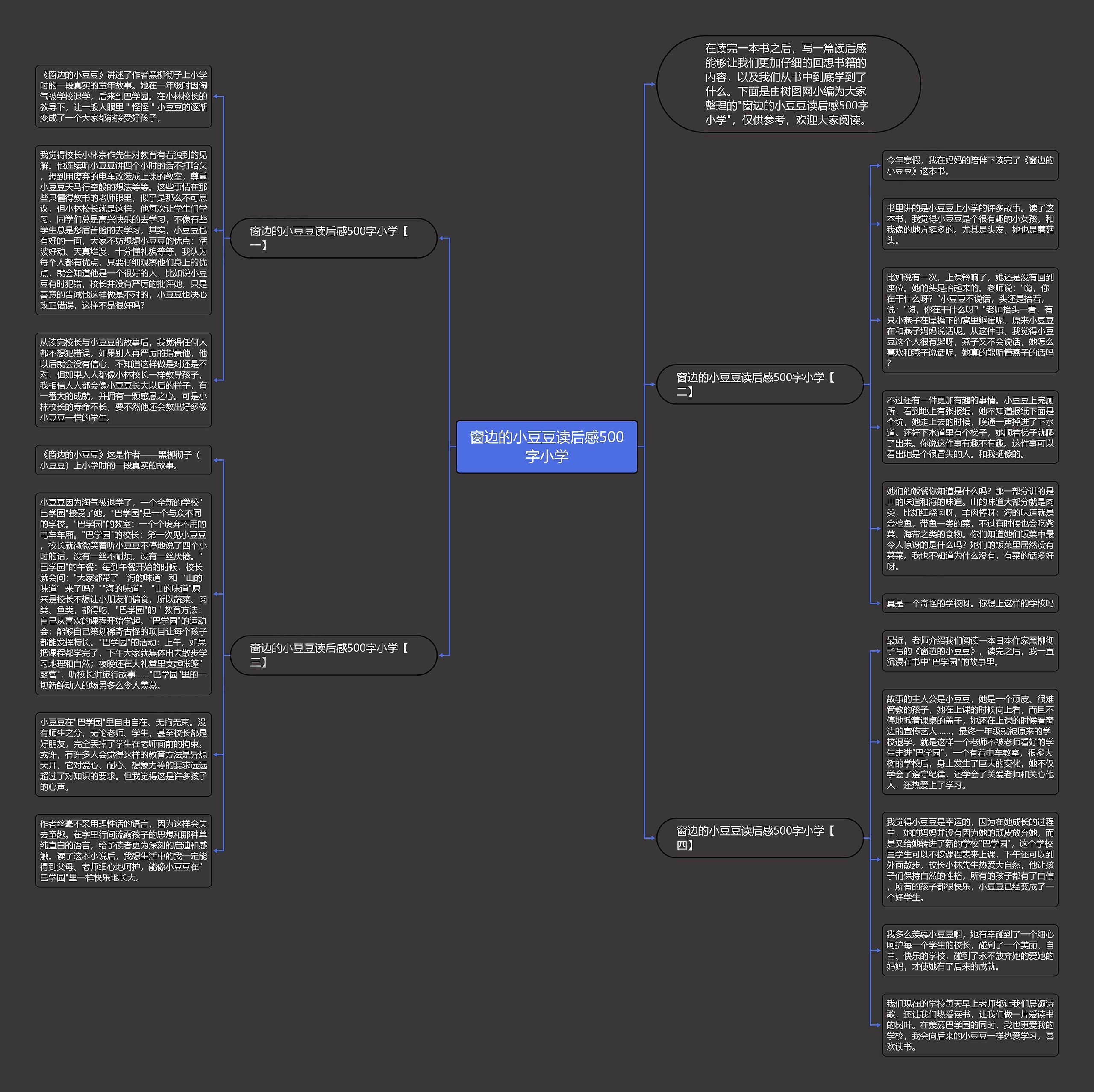 我们现在的学校每天早上老师都让我们晨颂诗歌,还让我们热爱读书,让我们做一片爱读书的树叶。在羡慕巴学园的同时,我也更爱我的学校,我会向后来的小豆豆一样热爱学习,喜欢读书。
