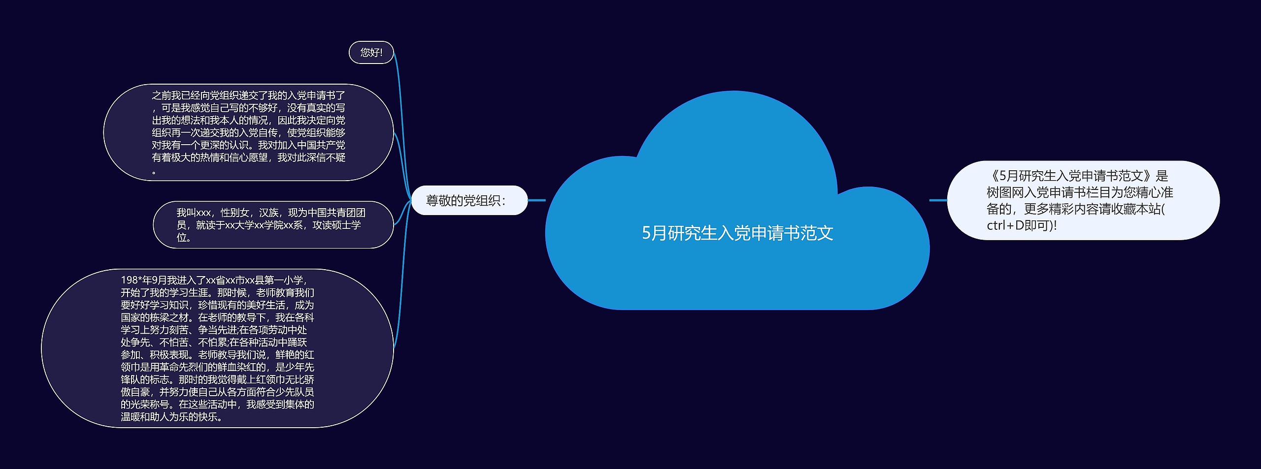 树图思维导图提供《5月研究生入党申请书范文》在线思维导图免费制作,点击“编辑”按钮,可对《5月研究生入党申请书范文》进行在线思维导图编辑,本思维导图属于思维导图模板主题,文件编号是:1b1b21ce3ec7d71541287727ad918c65