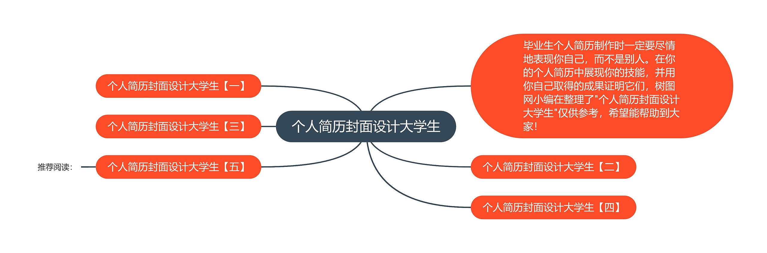 树图思维导图提供《个人简历封面设计大学生》在线思维导图免费制作,点击“编辑”按钮,可对《个人简历封面设计大学生》进行在线思维导图编辑,本思维导图属于思维导图模板主题,文件编号是:458a9e8b8cee2b9b62d0169b90c56651