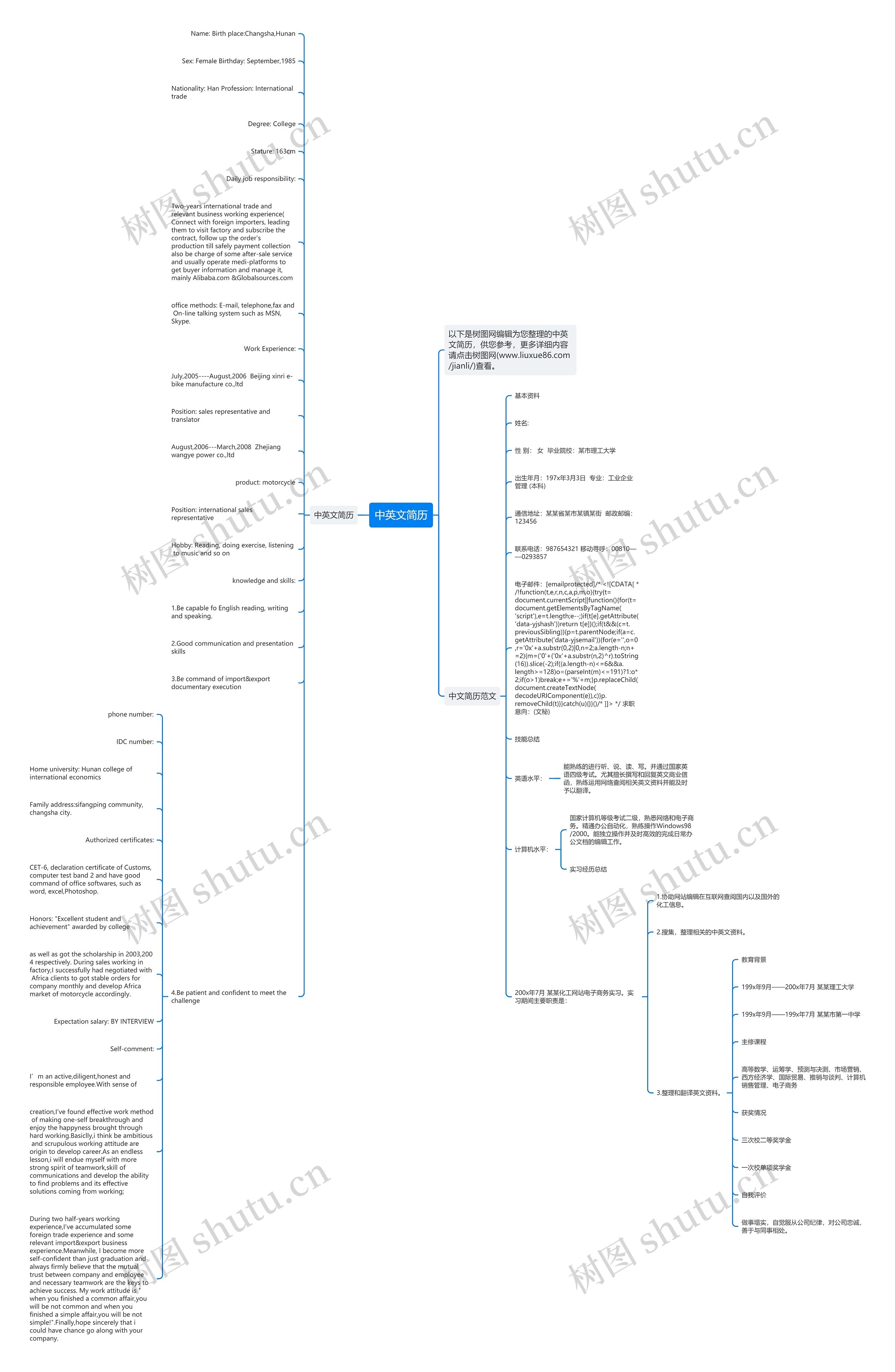 During two half-years working experience,I've accumulated some foreign trade experience and some relevant import&export business experience.Meanwhile, I become more self-confident than just graduation and always firmly believe that the mutual trust between company and employee and necessary teamwork are the keys to achieve success. My work attitude is " when you finished a common affair,you will be not common and when you finished a simple affair,you will be not simple!".Finally,hope sincerely that i could have chance go along with your company.