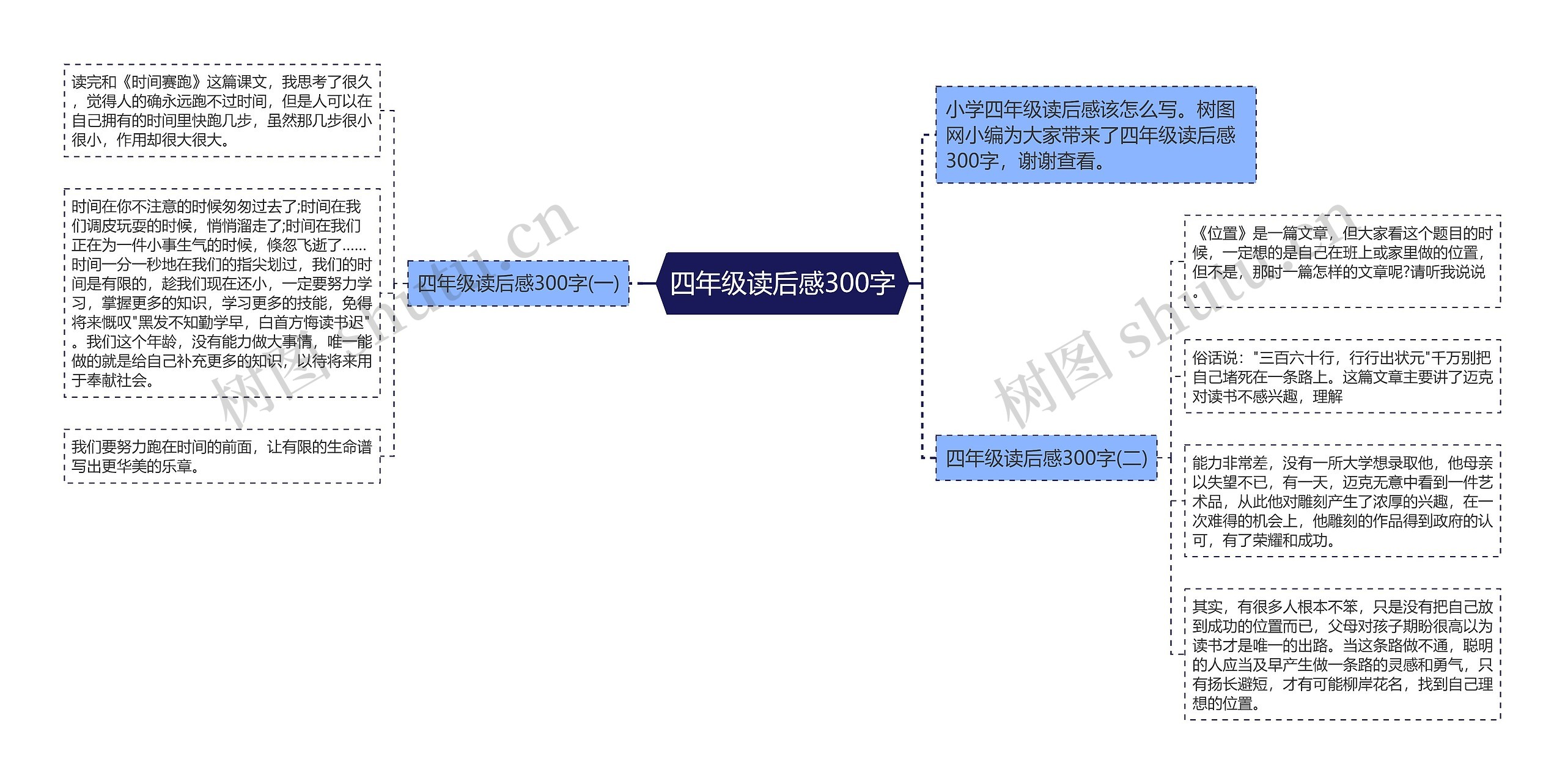 树图思维导图提供《四年级读后感300字》在线思维导图免费制作,点击“编辑”按钮,可对《四年级读后感300字》进行在线思维导图编辑,本思维导图属于思维导图模板主题,文件编号是:57bb5cc4b7dd4e2b2304f998f60fbf52