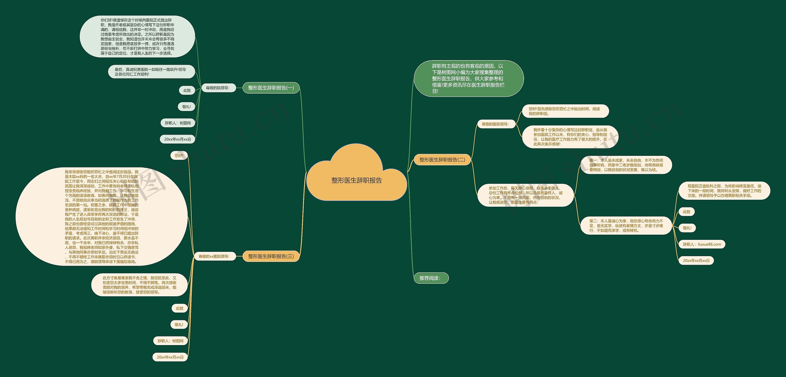 树图思维导图提供《整形医生辞职报告》在线思维导图免费制作,点击“编辑”按钮,可对《整形医生辞职报告》进行在线思维导图编辑,本思维导图属于思维导图模板主题,文件编号是:bb11da7ec61452f3002958f715b07c79