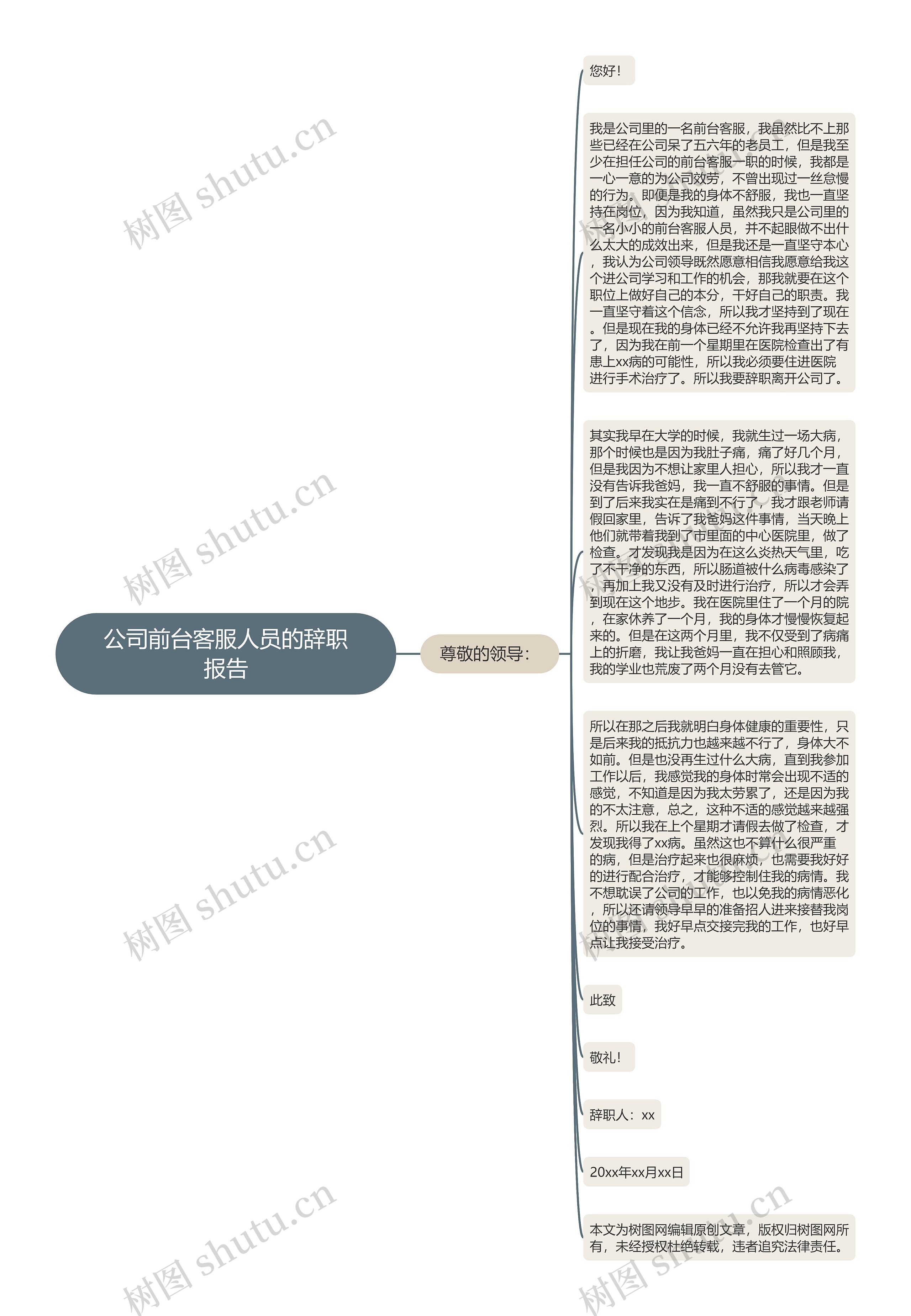 我是公司里的一名前台客服,我虽然比不上那些已经在公司呆了五六年的老员工,但是我至少在担任公司的前台客服一职的时候,我都是一心一意的为公司效劳,不曾出现过一丝怠慢的行为。即便是我的身体不舒服,我也一直坚持在岗位,因为我知道,虽然我只是公司里的一名小小的前台客服人员,并不起眼做不出什么太大的成效出来,但是我还是一直坚守本心,我认为公司领导既然愿意相信我愿意给我这个进公司学习和工作的机会,那我就要在这个职位上做好自己的本分,干好自己的职责。我一直坚守着这个信念,所以我才坚持到了现在。但是现在我的身体已经不允许我再坚持下去了,因为我在前一个星期里在医院检查出了有患上xx病的可能性,所以我必须要住进医院进行手术治疗了。所以我要辞职离开公司了。
