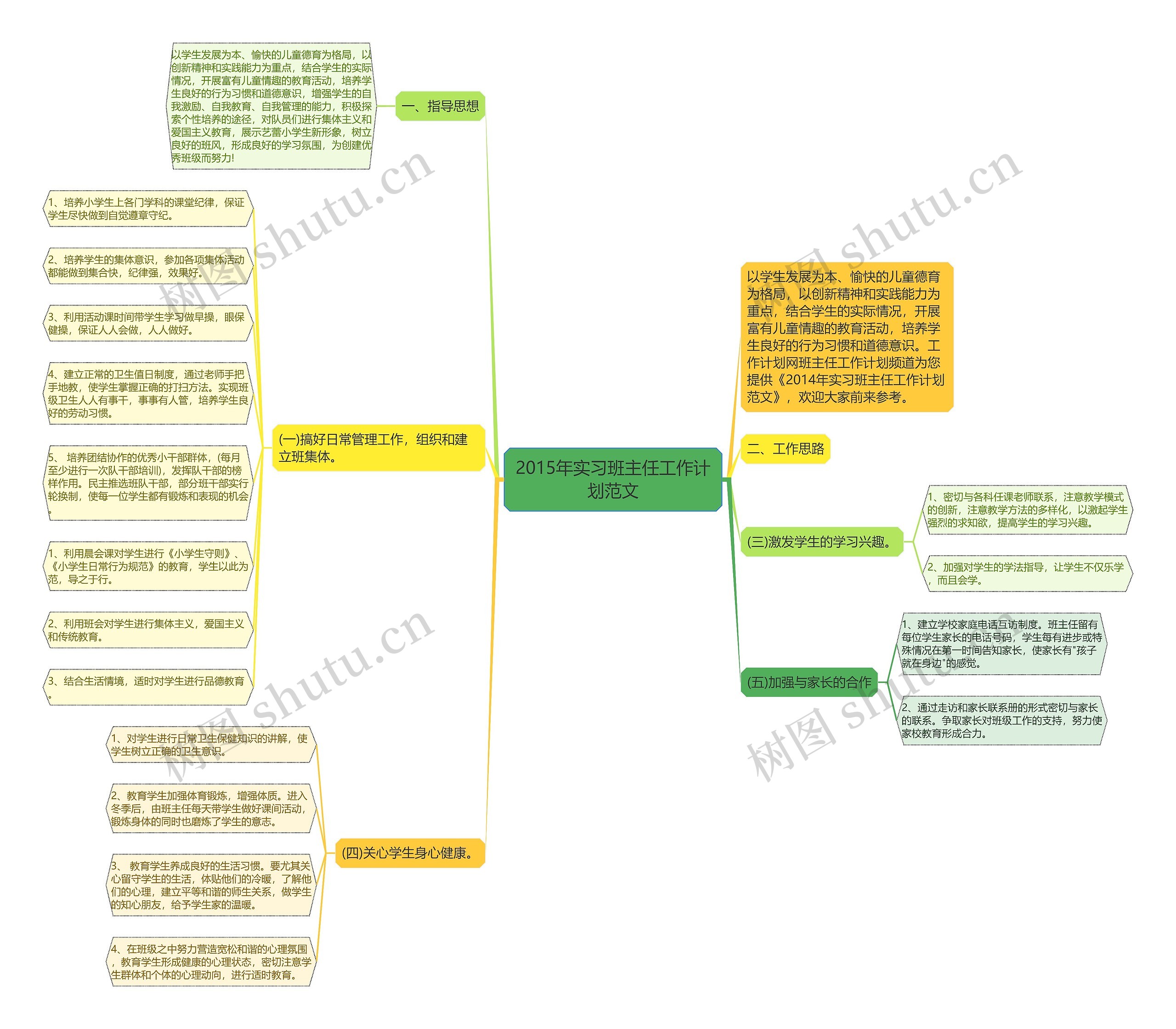 树图思维导图提供《2015年实习班主任工作计划范文》在线思维导图免费制作,点击“编辑”按钮,可对《2015年实习班主任工作计划范文》进行在线思维导图编辑,本思维导图属于思维导图模板主题,文件编号是:615544dac734fcc81d245356df9e4ad1
