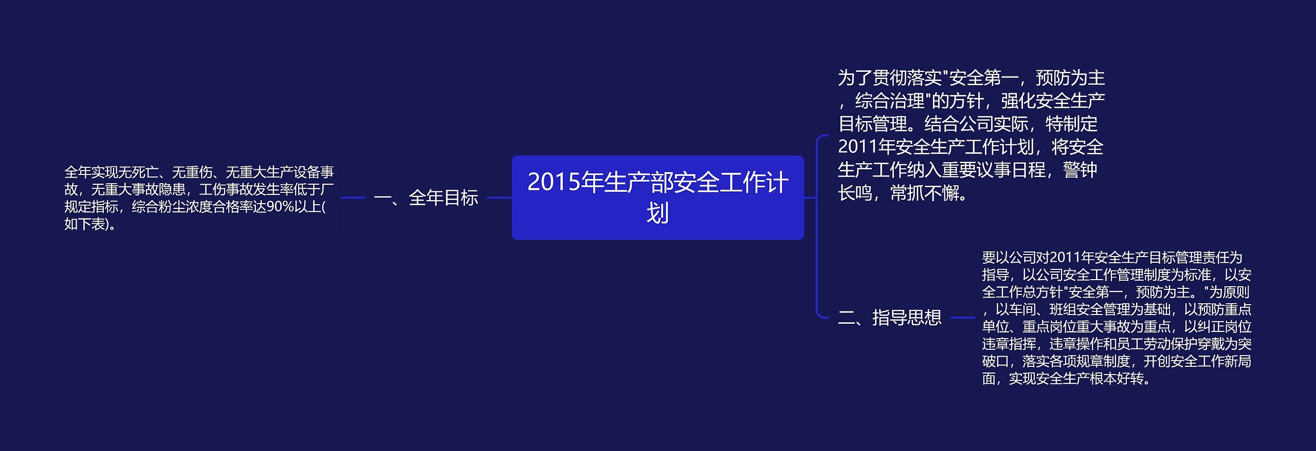 树图思维导图提供《2015年生产部安全工作计划》在线思维导图免费制作,点击“编辑”按钮,可对《2015年生产部安全工作计划》进行在线思维导图编辑,本思维导图属于思维导图模板主题,文件编号是:56824df2701971d7e967666dcb57ae7e