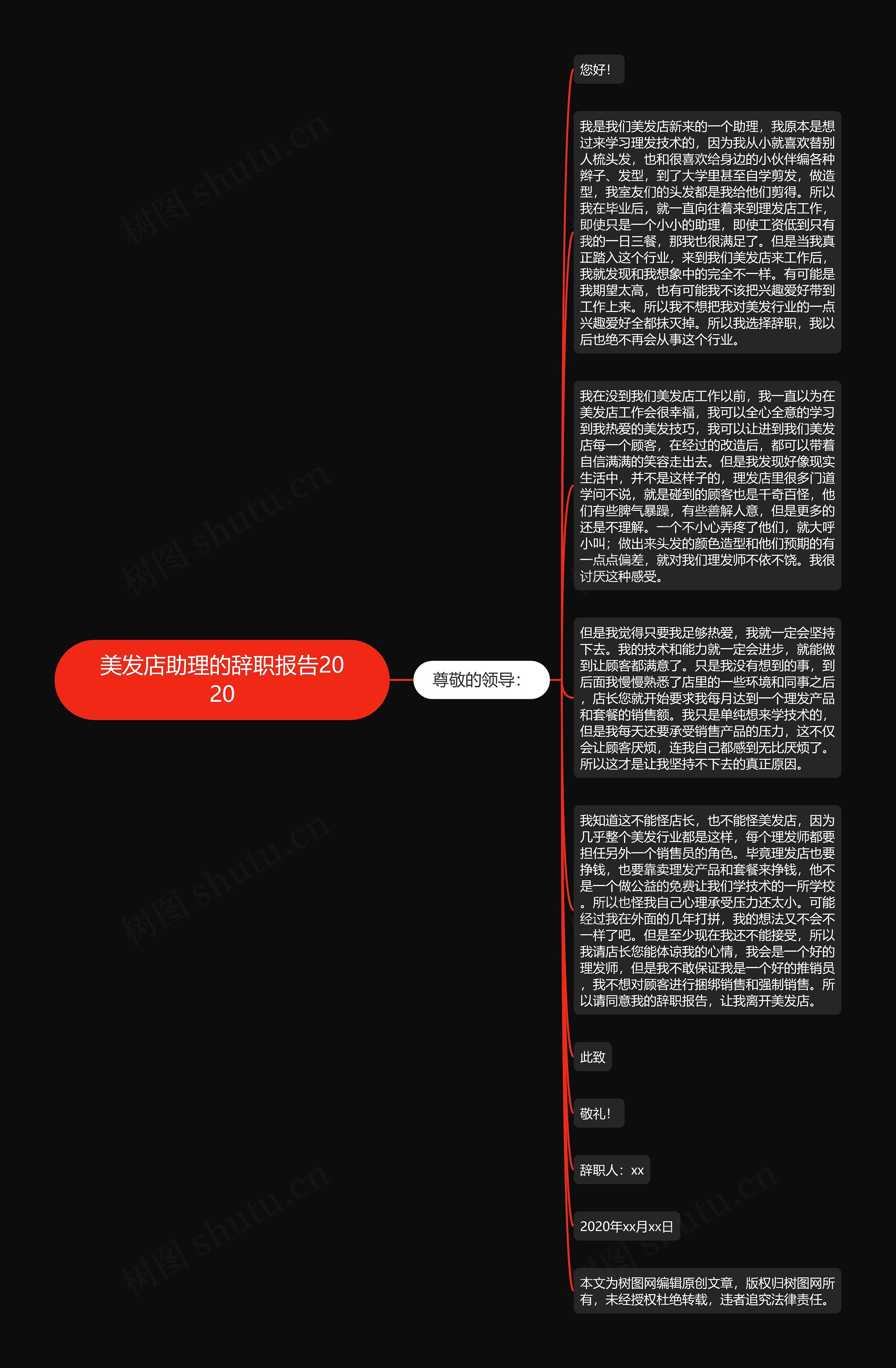 我知道这不能怪店长,也不能怪美发店,因为几乎整个美发行业都是这样,每个理发师都要担任另外一个销售员的角色。毕竟理发店也要挣钱,也要靠卖理发产品和套餐来挣钱,他不是一个做公益的免费让我们学技术的一所学校。所以也怪我自己心理承受压力还太小。可能经过我在外面的几年打拼,我的想法又不会不一样了吧。但是至少现在我还不能接受,所以我请店长您能体谅我的心情,我会是一个好的理发师,但是我不敢保证我是一个好的推销员,我不想对顾客进行捆绑销售和强制销售。所以请同意我的辞职报告,让我离开美发店。