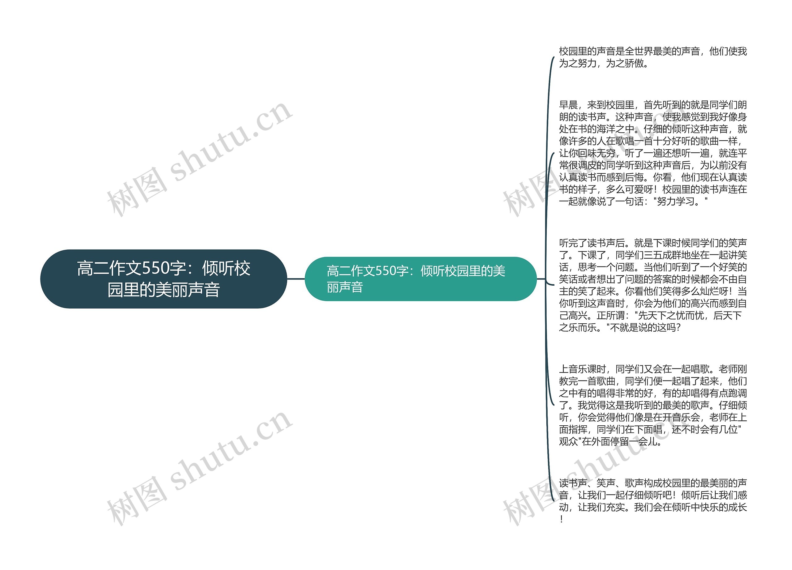 听完了读书声后。就是下课时候同学们的笑声了。下课了,同学们三五成群地坐在一起讲笑话,思考一个问题。当他们听到了一个好笑的笑话或者想出了问题的答案的时候都会不由自主的笑了起来。你看他们笑得多么灿烂呀!当你听到这声音时,你会为他们的高兴而感到自己高兴。正所谓:"先天下之忧而忧,后天下之乐而乐。"不就是说的这吗?