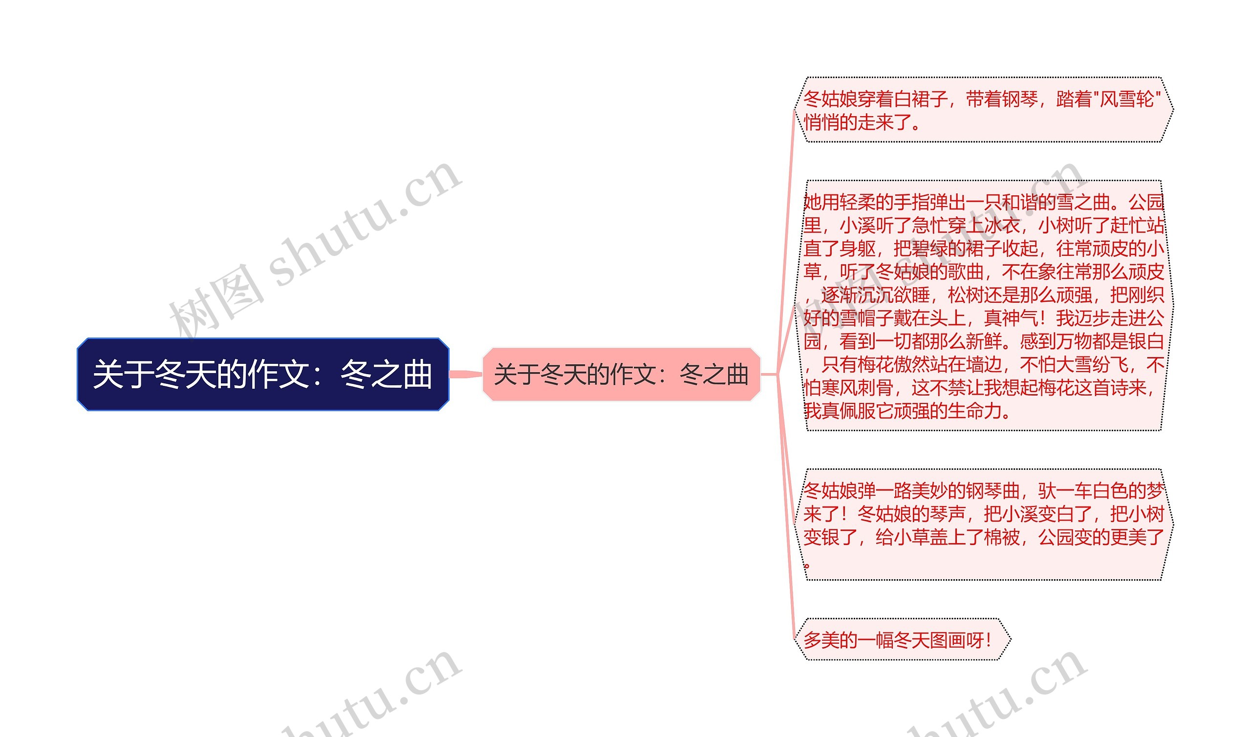 树图思维导图提供《关于冬天的作文:冬之曲》在线思维导图免费制作,点击“编辑”按钮,可对《关于冬天的作文:冬之曲》进行在线思维导图编辑,本思维导图属于思维导图模板主题,文件编号是:ec78dfdd23aa9d10297def6226a49c94