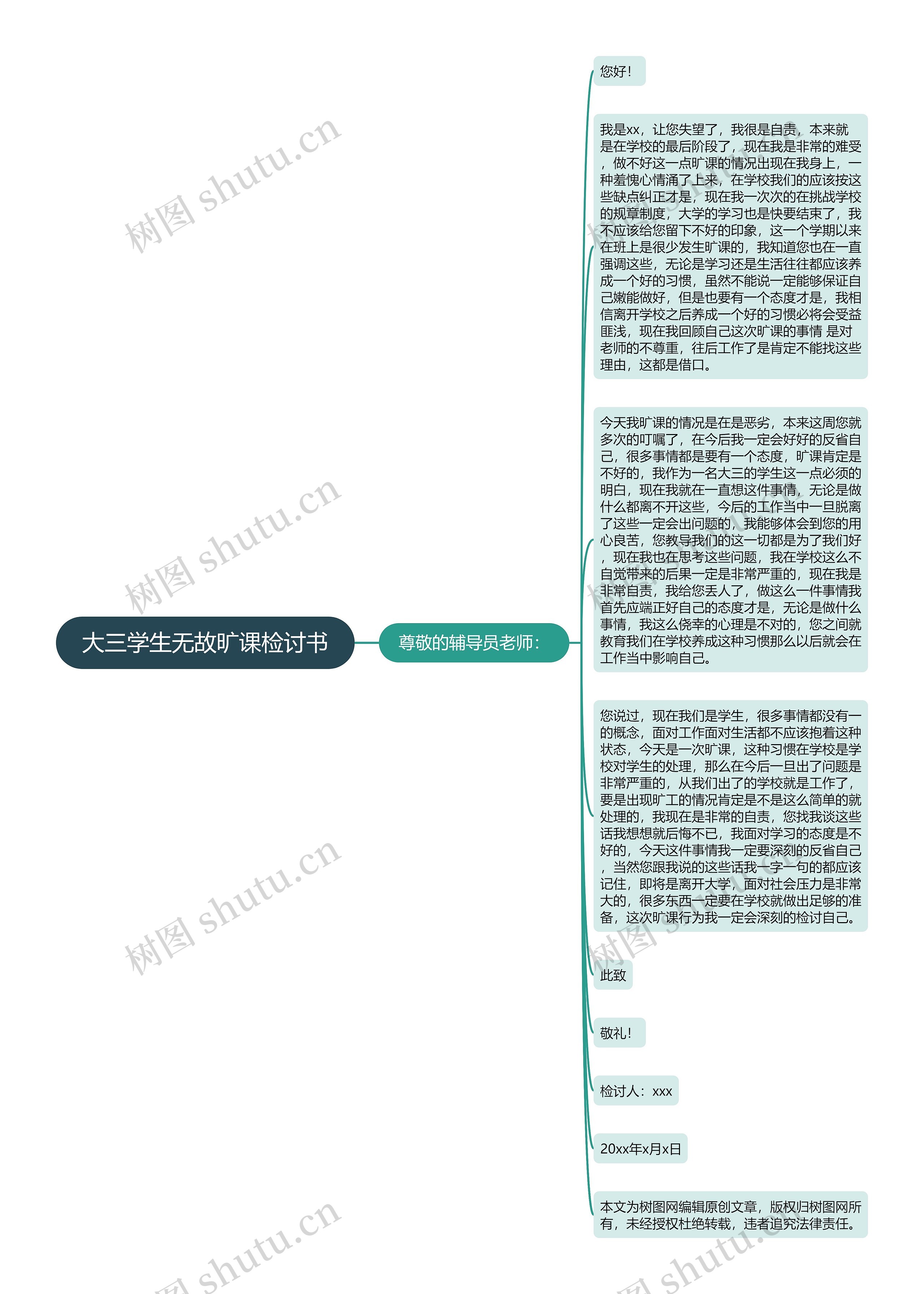 我是xx,让您失望了,我很是自责,本来就是在学校的最后阶段了,现在我是非常的难受,做不好这一点旷课的情况出现在我身上,一种羞愧心情涌了上来,在学校我们的应该按这些缺点纠正才是,现在我一次次的在挑战学校的规章制度,大学的学习也是快要结束了,我不应该给您留下不好的印象,这一个学期以来在班上是很少发生旷课的,我知道您也在一直强调这些,无论是学习还是生活往往都应该养成一个好的习惯,虽然不能说一定能够保证自己嫩能做好,但是也要有一个态度才是,我相信离开学校之后养成一个好的习惯必将会受益匪浅,现在我回顾自己这次旷课的事情 是对老师的不尊重,往后工作了是肯定不能找这些理由,这都是借口。