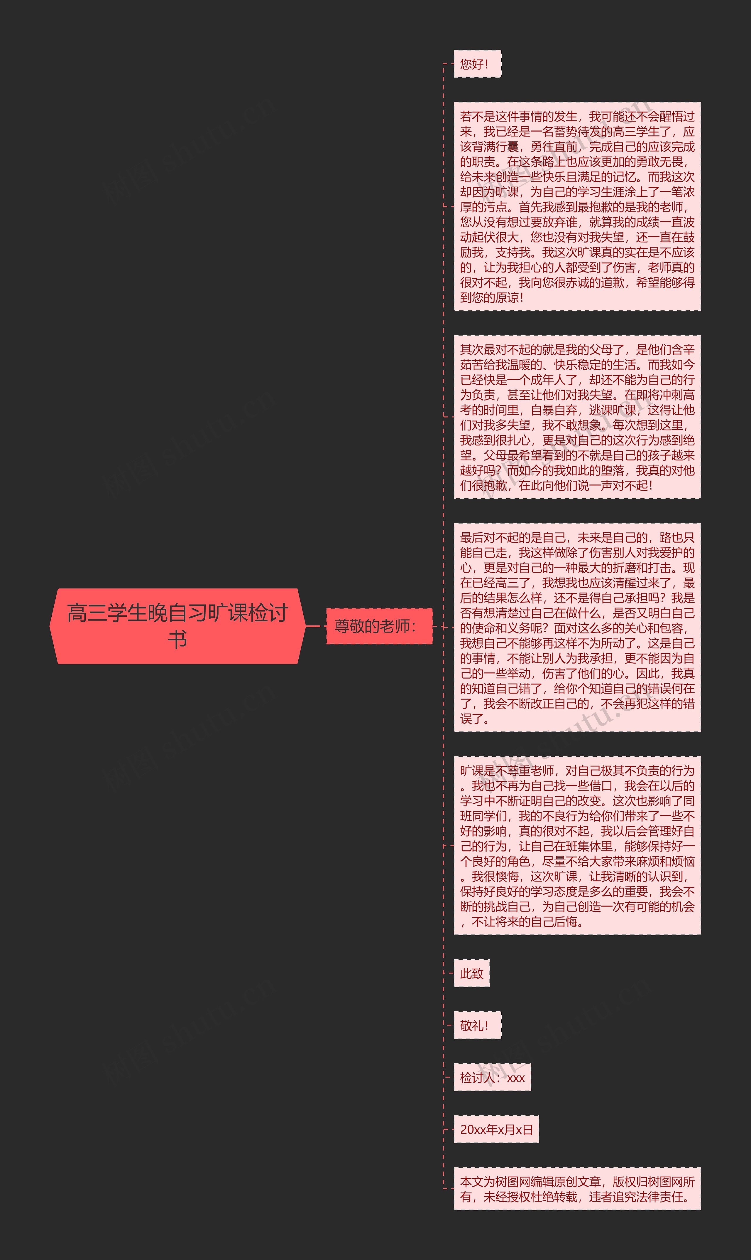 若不是这件事情的发生,我可能还不会醒悟过来,我已经是一名蓄势待发的高三学生了,应该背满行囊,勇往直前,完成自己的应该完成的职责。在这条路上也应该更加的勇敢无畏,给未来创造一些快乐且满足的记忆。而我这次却因为旷课,为自己的学习生涯涂上了一笔浓厚的污点。首先我感到最抱歉的是我的老师,您从没有想过要放弃谁,就算我的成绩一直波动起伏很大,您也没有对我失望,还一直在鼓励我,支持我。我这次旷课真的实在是不应该的,让为我担心的人都受到了伤害,老师真的很对不起,我向您很赤诚的道歉,希望能够得到您的原谅!