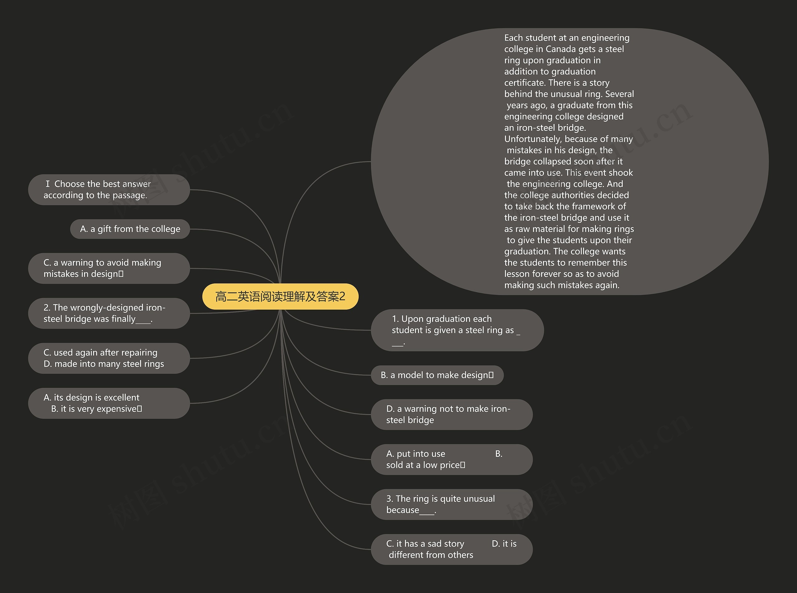 Each student at an engineering college in Canada gets a steel ring upon graduation in addition to graduation certificate. There is a story behind the unusual ring. Several years ago, a graduate from this engineering college designed an iron-steel bridge. Unfortunately, because of many mistakes in his design, the bridge collapsed soon after it came into use. This event shook the engineering college. And the college authorities decided to take back the framework of the iron-steel bridge and use it as raw material for making rings to give the students upon their graduation. The college wants the students to remember this lesson forever so as to avoid making such mistakes again.