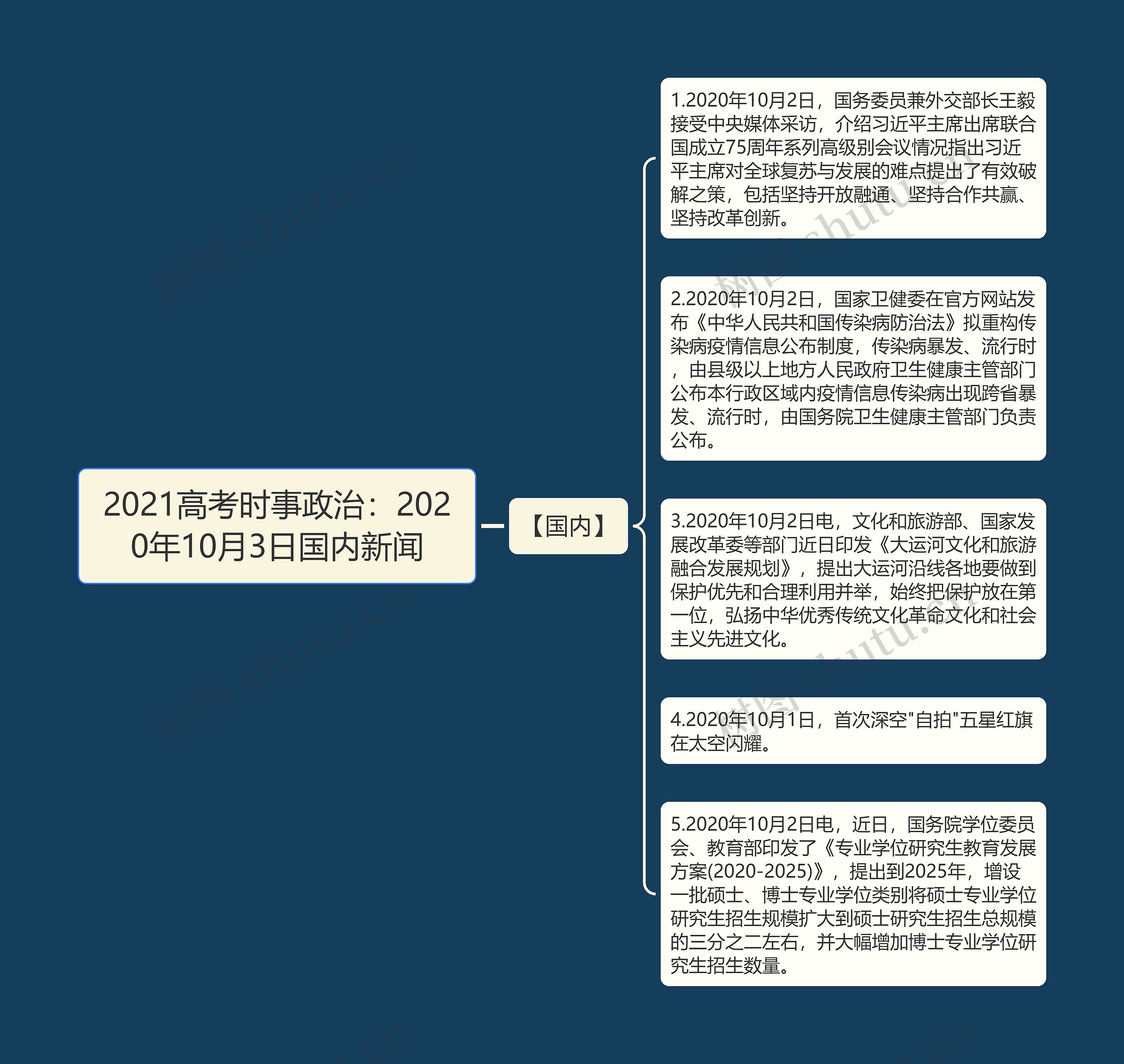 1.2020年10月2日,国务委员兼外交部长王毅接受中央媒体采访,介绍习近平主席出席联合国成立75周年系列高级别会议情况指出习近平主席对全球复苏与发展的难点提出了有效破解之策,包括坚持开放融通、坚持合作共赢、坚持改革创新。
