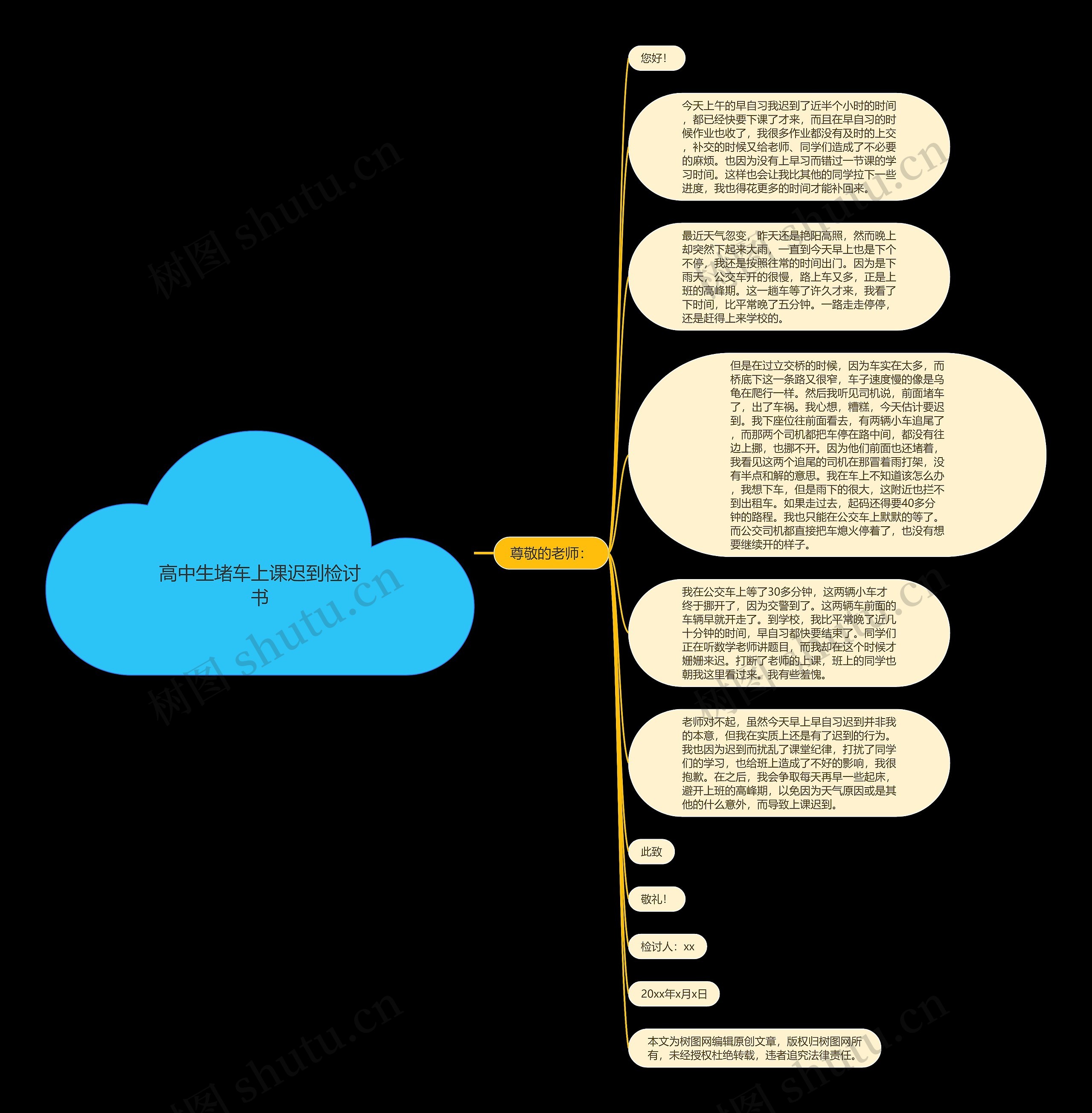 老师对不起,虽然今天早上早自习迟到并非我的本意,但我在实质上还是有了迟到的行为。我也因为迟到而扰乱了课堂纪律,打扰了同学们的学习,也给班上造成了不好的影响,我很抱歉。在之后,我会争取每天再早一些起床,避开上班的高峰期,以免因为天气原因或是其他的什么意外,而导致上课迟到。