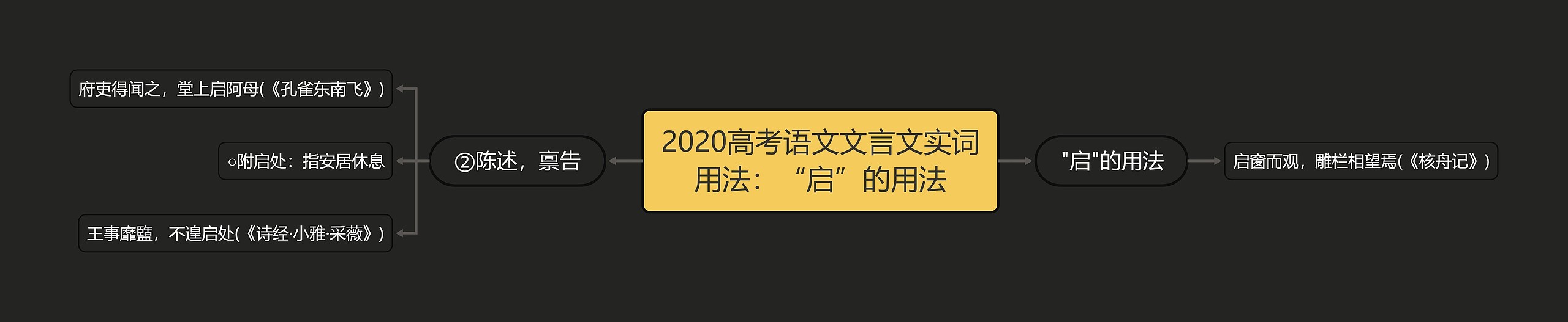 树图思维导图提供《2020高考语文文言文实词用法:“启”的用法》在线思维导图免费制作,点击“编辑”按钮,可对《2020高考语文文言文实词用法:“启”的用法》进行在线思维导图编辑,本思维导图属于思维导图模板主题,文件编号是:f957d445d7b6fbb966aff955e357a71e