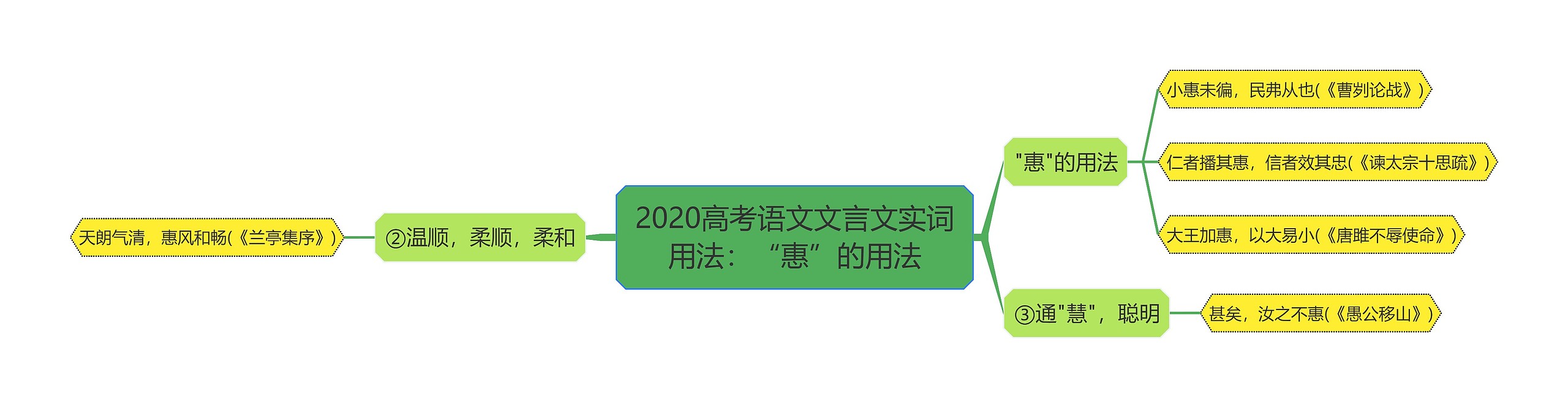 树图思维导图提供《2020高考语文文言文实词用法:“惠”的用法》在线思维导图免费制作,点击“编辑”按钮,可对《2020高考语文文言文实词用法:“惠”的用法》进行在线思维导图编辑,本思维导图属于思维导图模板主题,文件编号是:6985caab3d369f213006653e5ac3b89e