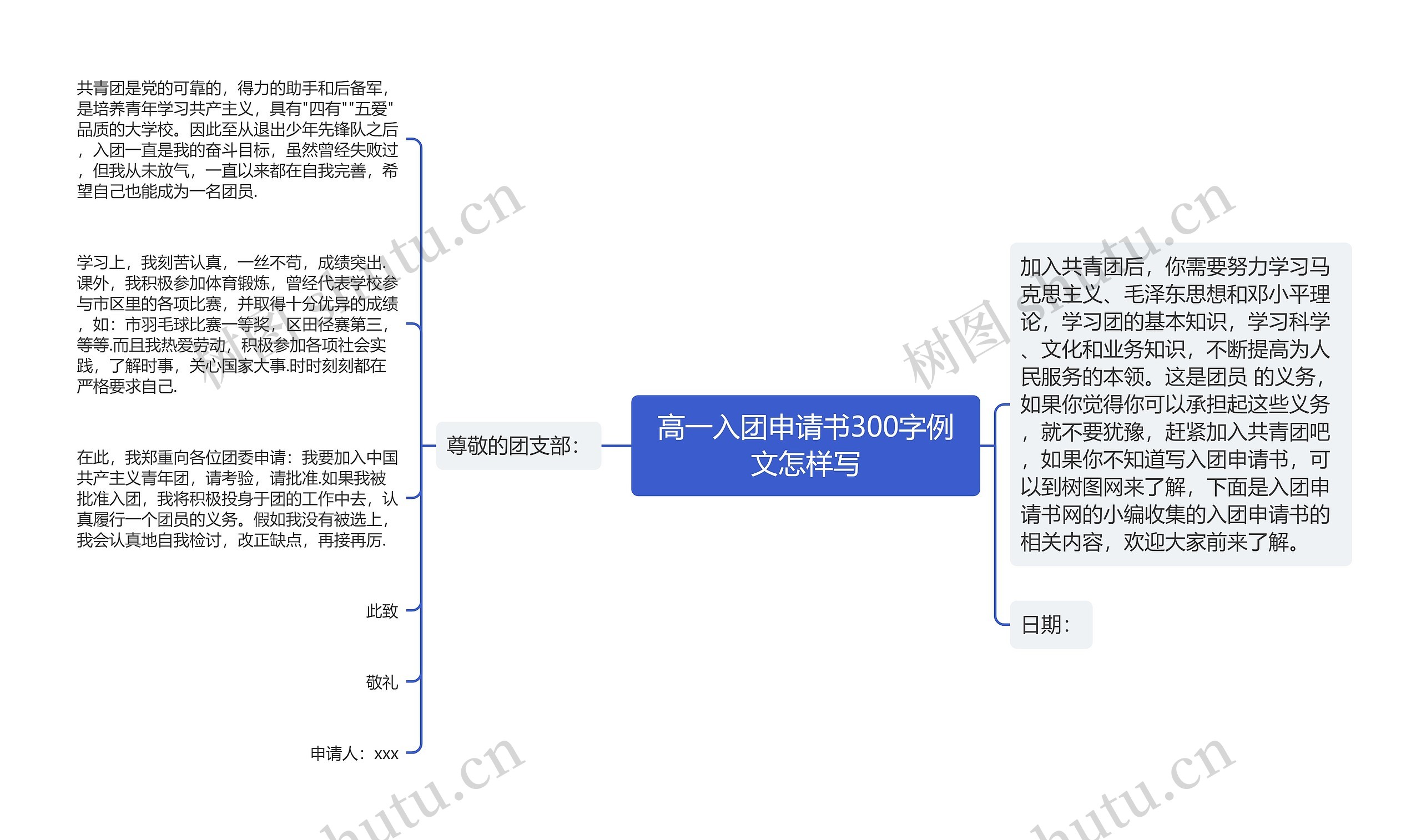 树图思维导图提供《高一入团申请书300字例文怎样写》在线思维导图免费制作,点击“编辑”按钮,可对《高一入团申请书300字例文怎样写》进行在线思维导图编辑,本思维导图属于思维导图模板主题,文件编号是:d04790d39d29b947ce6d877a7a321601