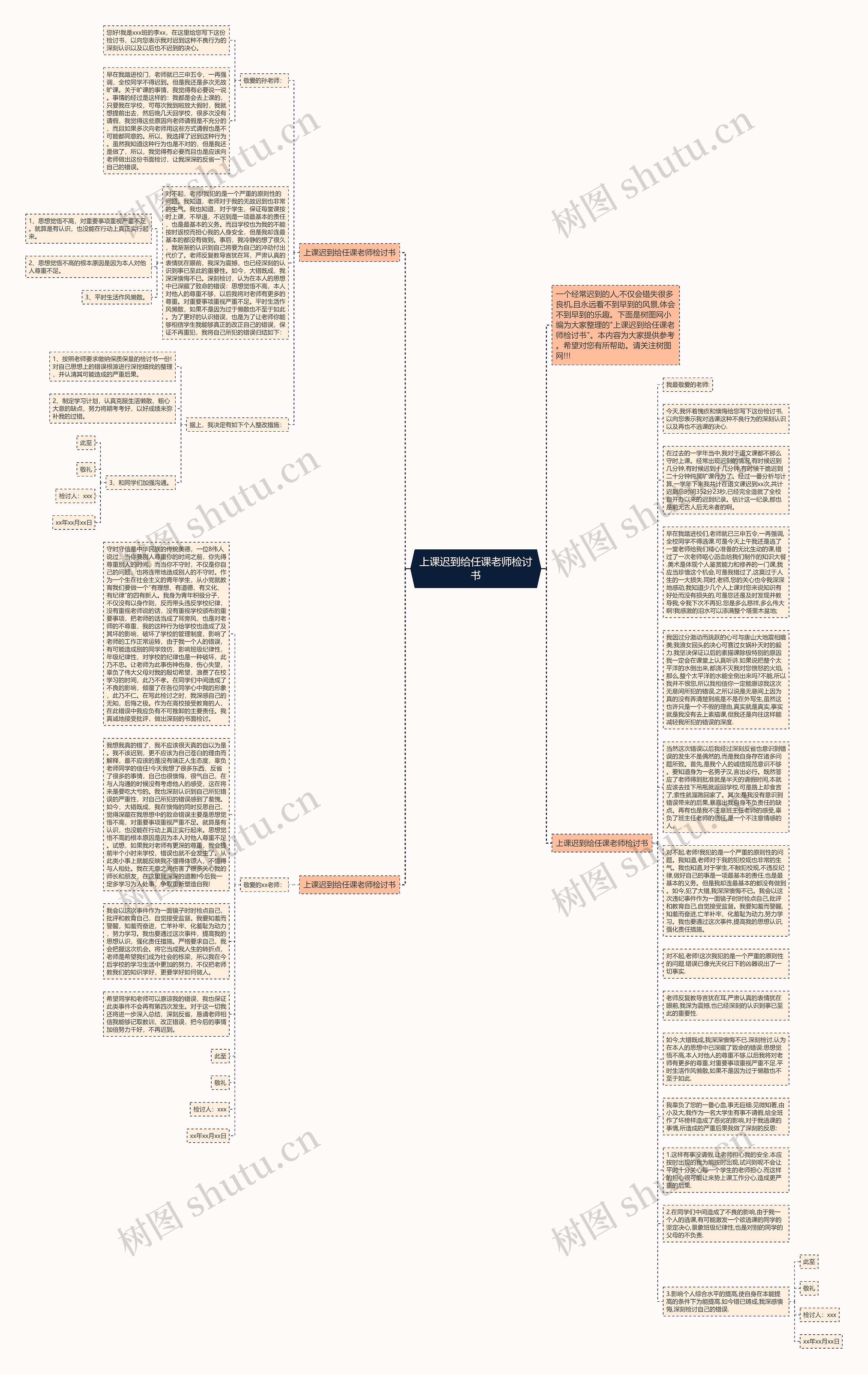 我辜负了您的一番心血,事无巨细.见微知著,由小及大,我作为一名大学生有事不请假,给全班作了坏榜样造成了恶劣的影响,对于我逃课的事情,所造成的严重后果我做了深刻的反思: