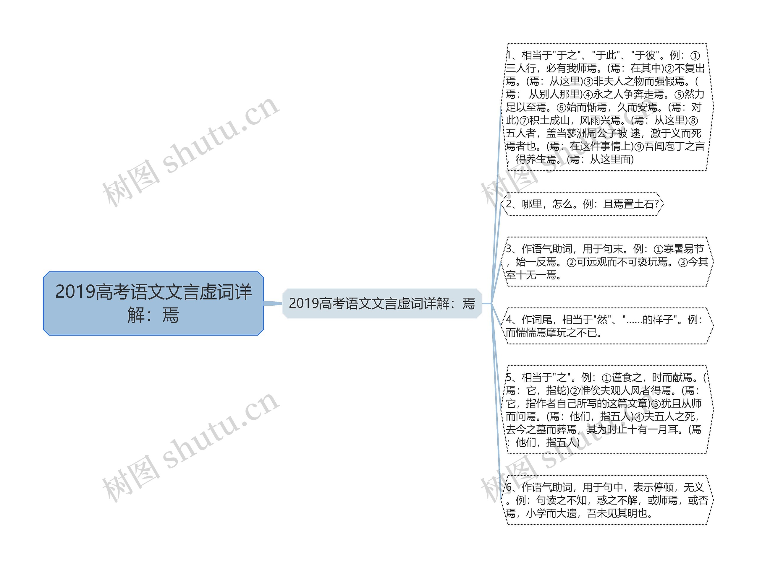 5、相当于"之"。例:①谨食之,时而献焉。(焉:它,指蛇)②惟俟夫观人风者得焉。(焉:它,指作者自己所写的这篇文章)③犹且从师而问焉。(焉:他们,指五人)④夫五人之死,去今之墓而葬焉,其为时止十有一月耳。(焉:他们,指五人)