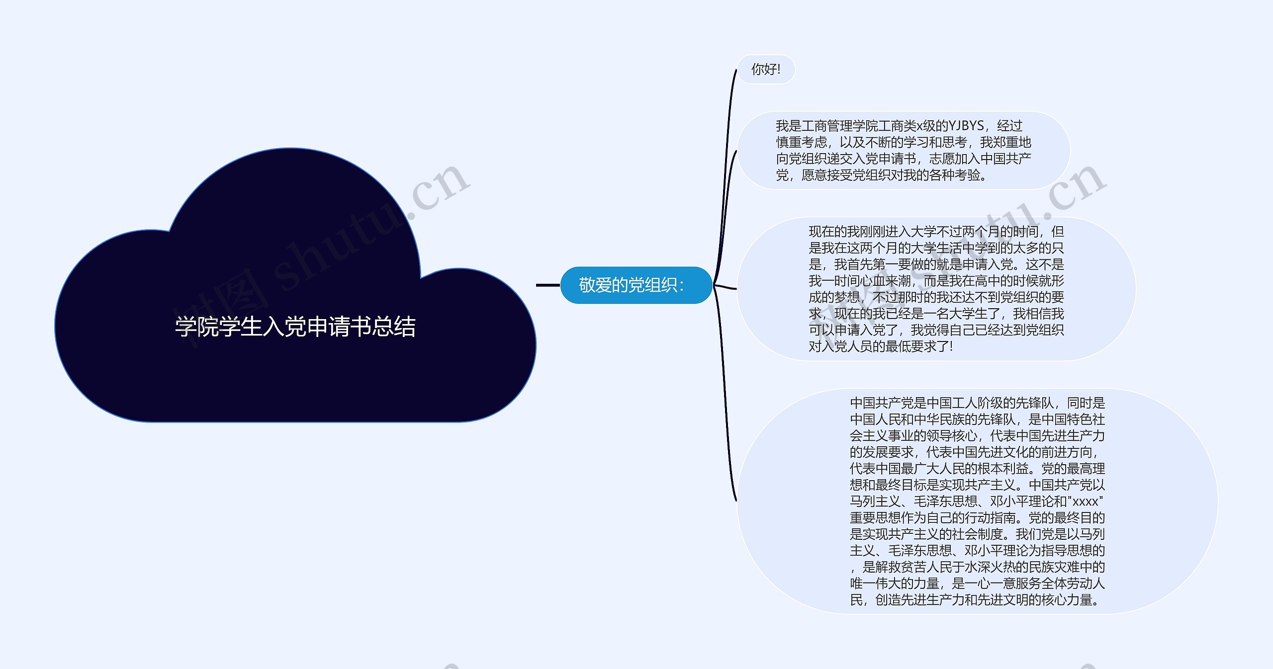 树图思维导图提供《学院学生入党申请书总结》在线思维导图免费制作,点击“编辑”按钮,可对《学院学生入党申请书总结》进行在线思维导图编辑,本思维导图属于思维导图模板主题,文件编号是:f945feeaaaaa458f41fdf6505bf4dcd9