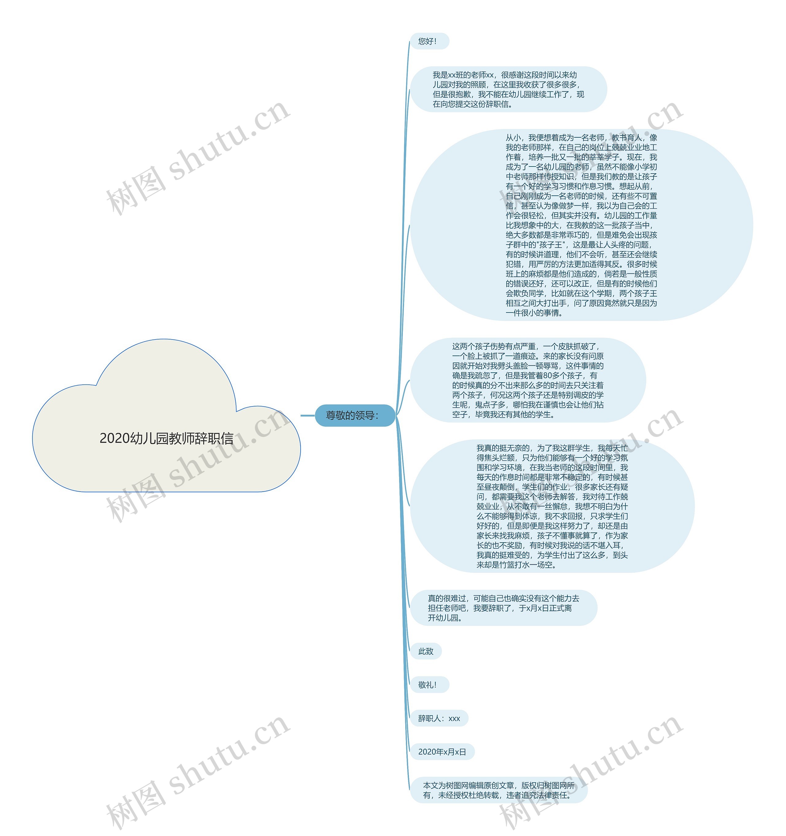 我是xx班的老师xx,很感谢这段时间以来幼儿园对我的照顾,在这里我收获了很多很多,但是很抱歉,我不能在幼儿园继续工作了,现在向您提交这份辞职信。